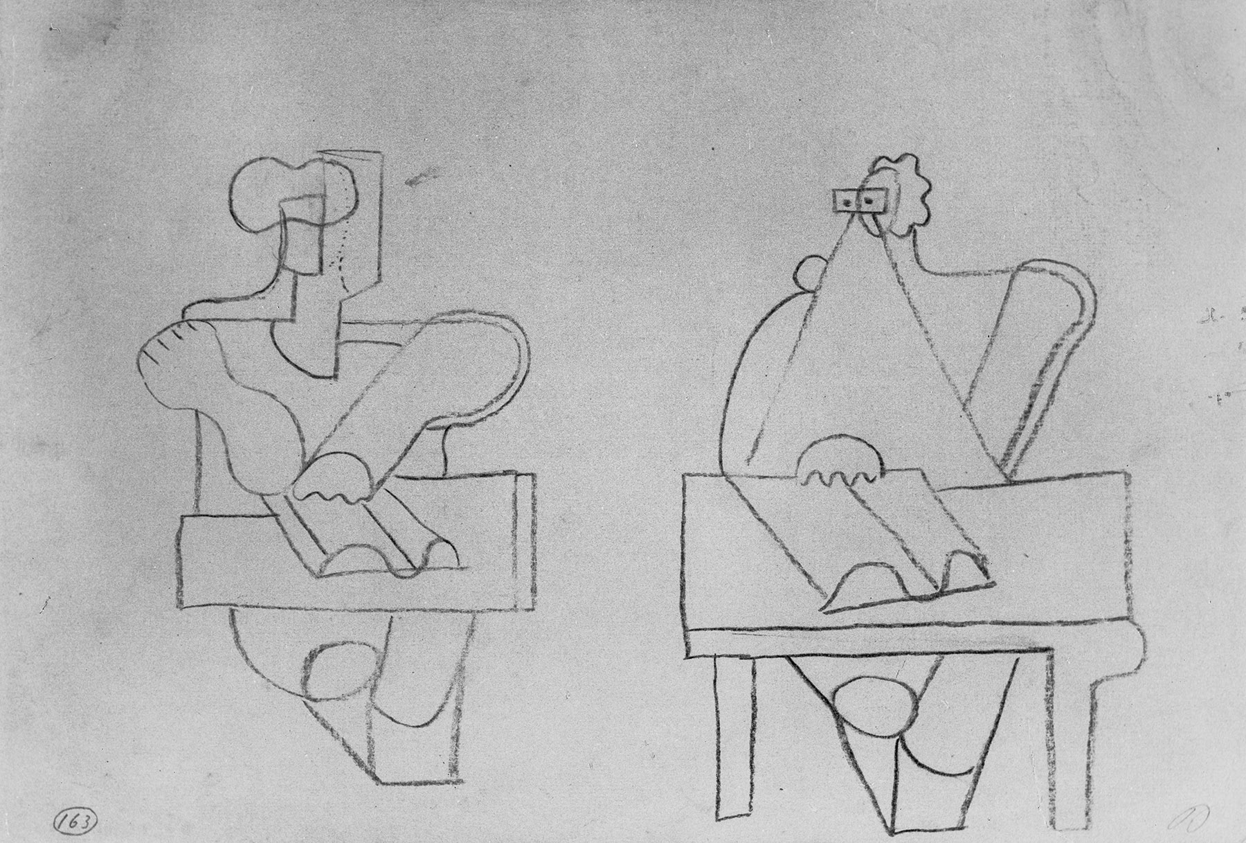 Kohle auf chamoisfarbigem Maschinen-Bütten mit Wz. GOHRSMÜHLE (2 verschiedene, beide angeschnitten durch Papierränder)