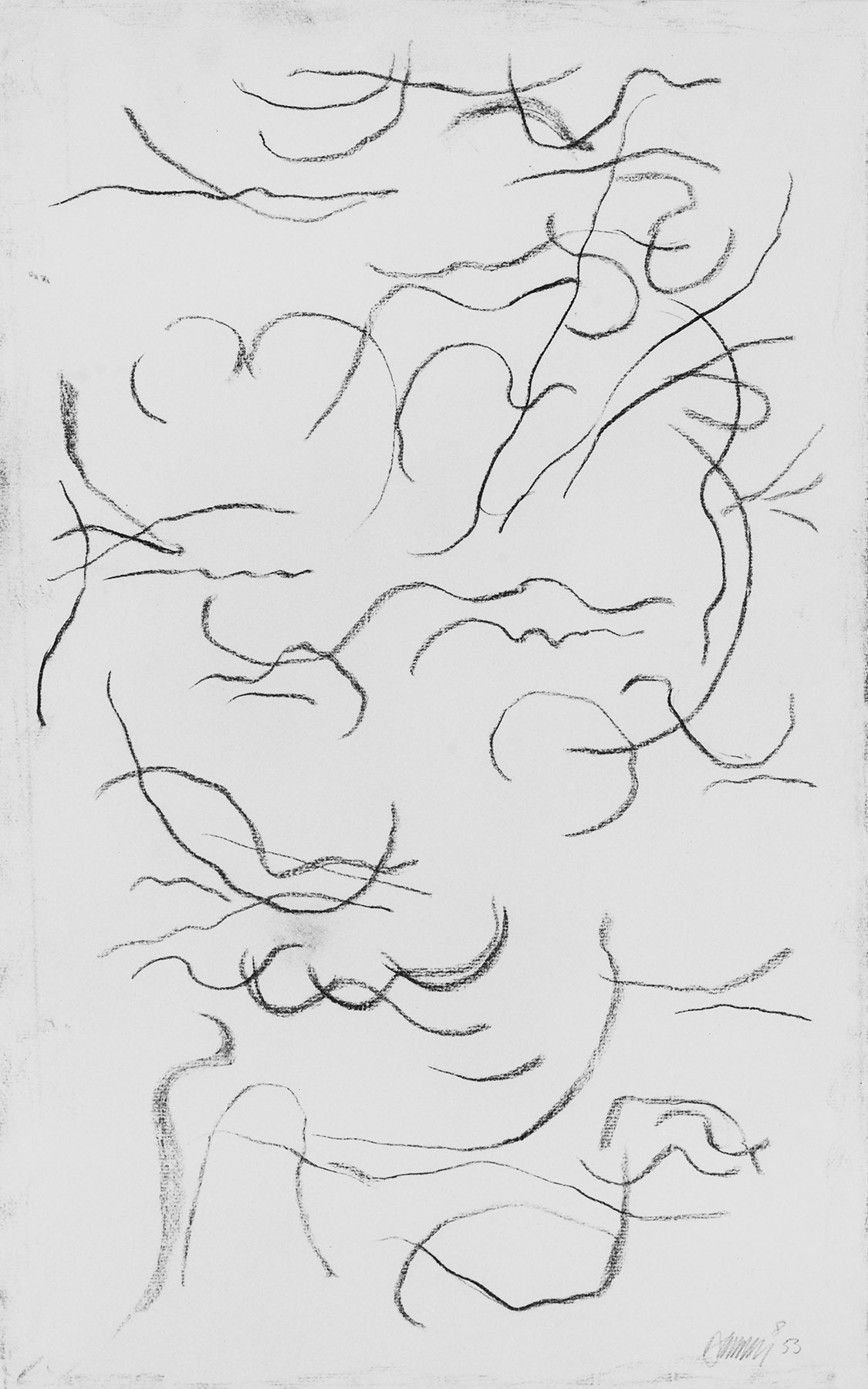 Kohle, z. T. gewischt, fixiert, auf chamoisfarbigem, am Rand l. perforiertem Ingres-Bütten