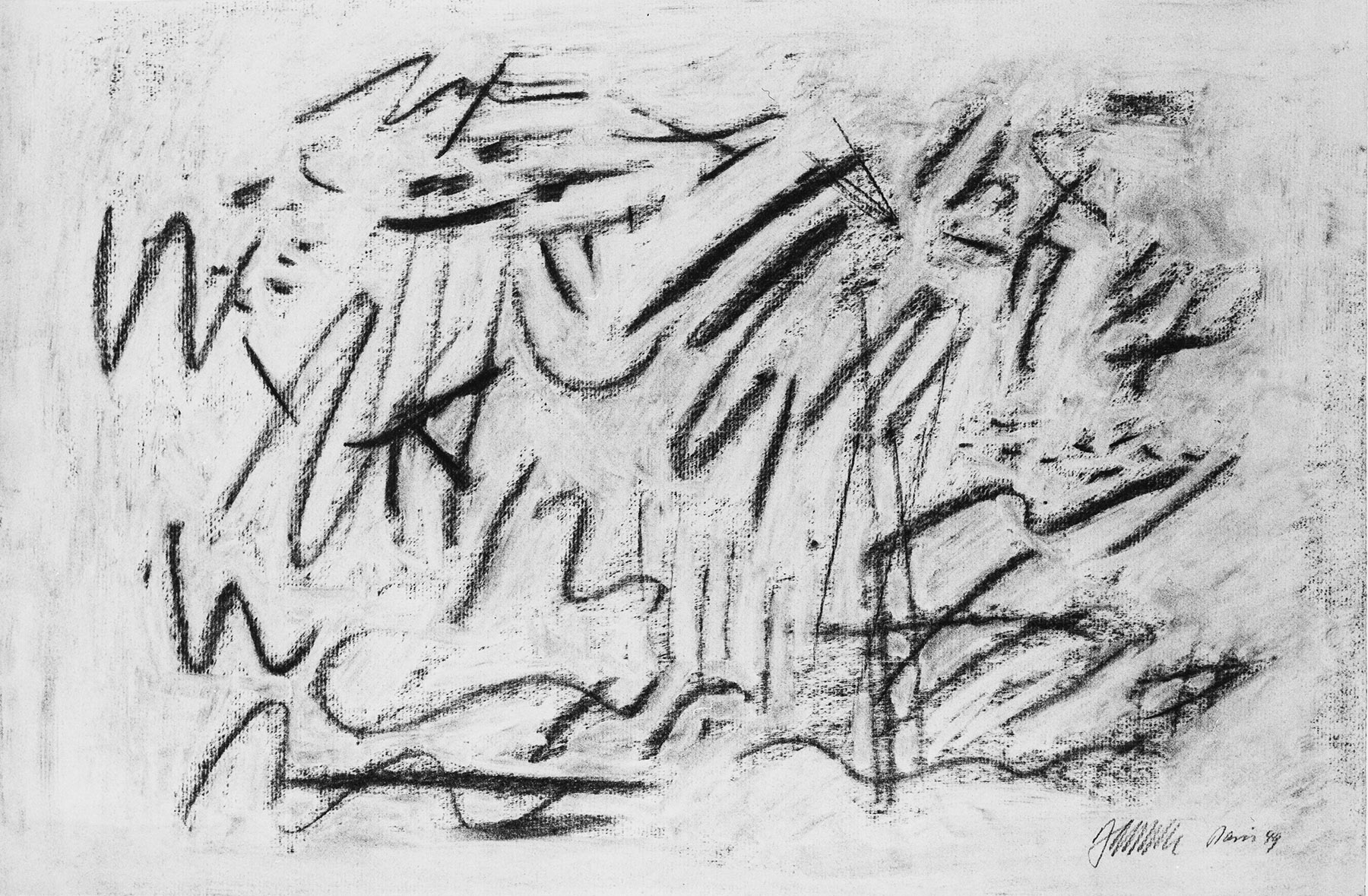 Kohle, gewischt, radiert, fixiert, auf chamoisfarbigem Ingres-Bütten mit Wz. r. u.: INGRES und l. u.: CANSON & MO...
