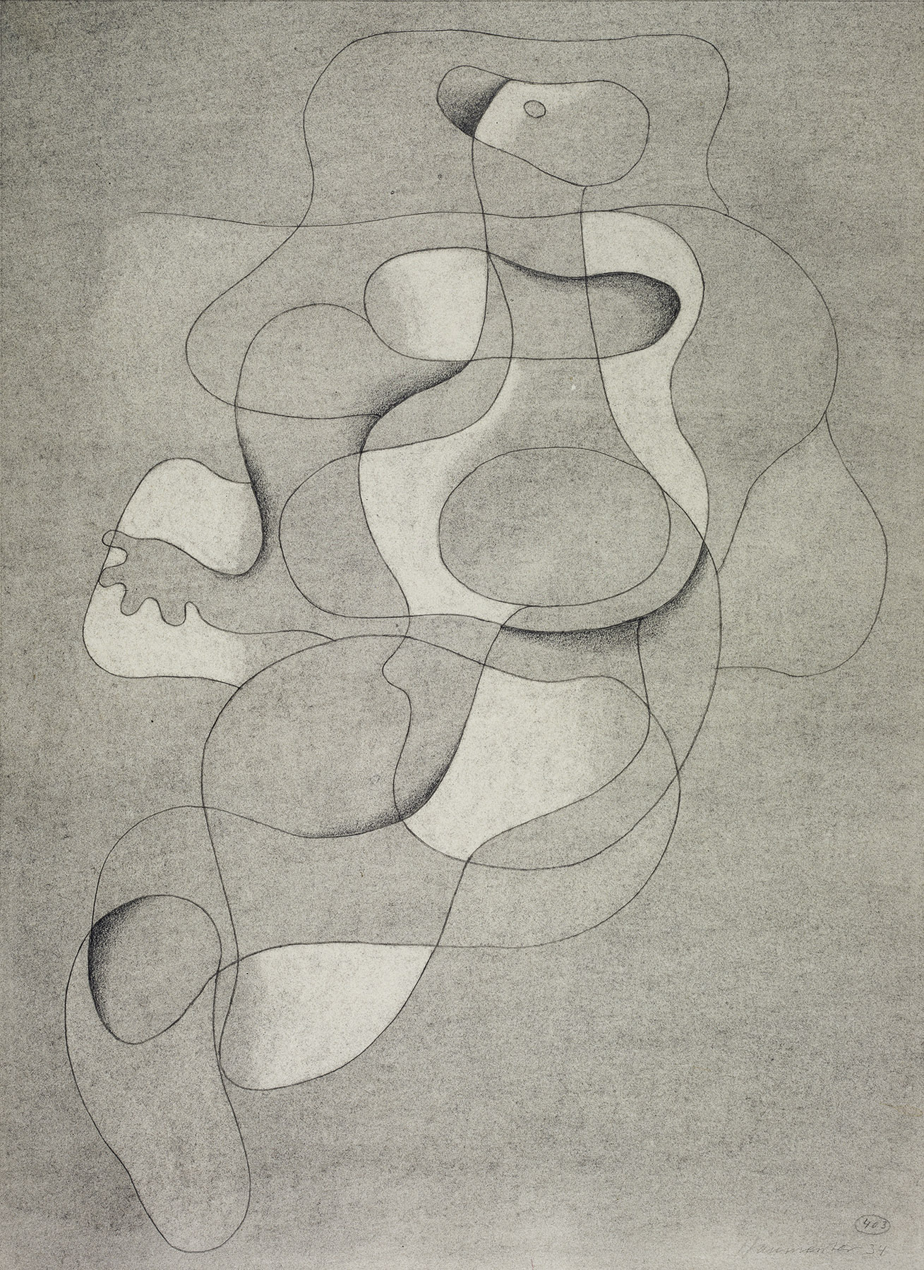Bleistift, Kohle, gewischt, Konturen vorgeritzt (mit leichten Abweichungen), fixiert, Einfassungslinien, auf chamoisfarbigem Zeichenkarton