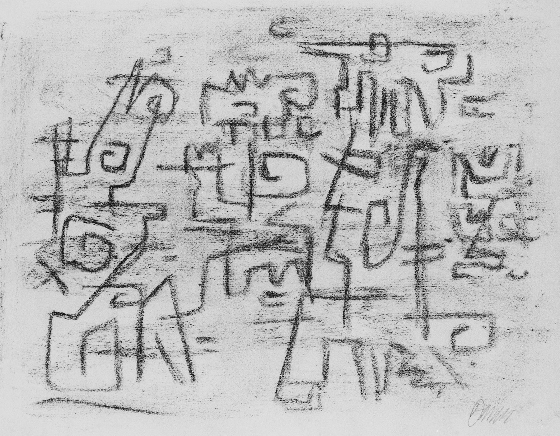 Kohle, gewischt, fixiert, auf chamoisfarbigem Ingres-Bütten
