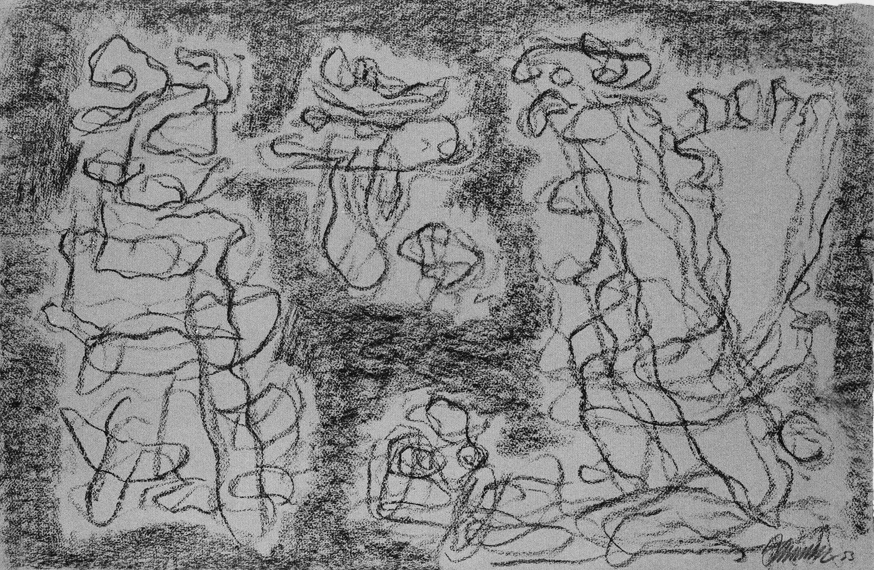 Kohle, fixiert, auf mittelbraunem Ingres-Bütten mit Wz. l. u.: Kartusche und r. o.:...NTGOLFIER FRANCE