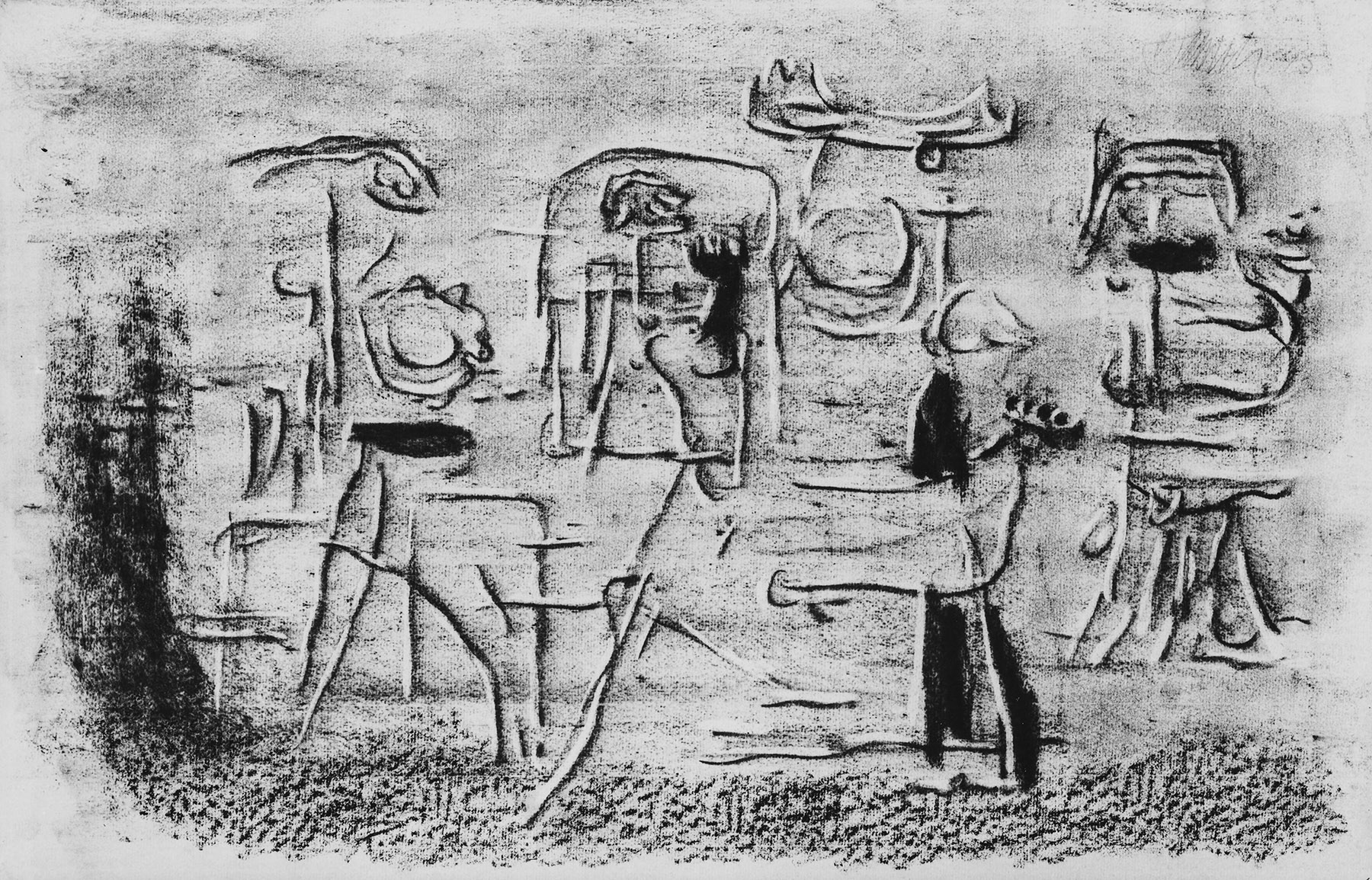Kohle, gewischt, radiert, Kreide, auf chamoisfarbigem Ingres-Bütten