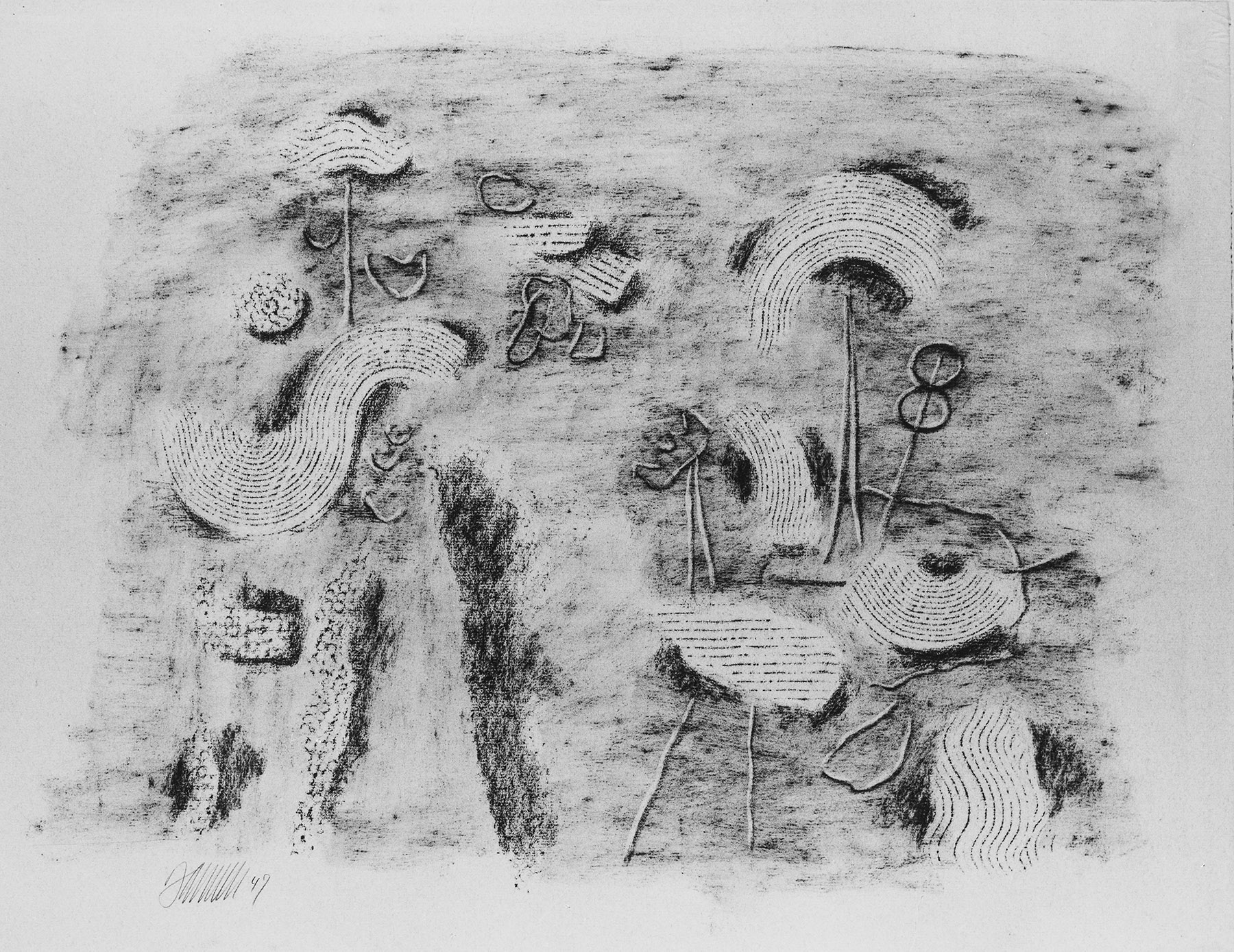 Kohle, gewischt, radiert, Ölkreide in Schwarz, z. T. durchgerieben, fixiert, auf chamoisfarbigem bis lichtblauem Ingres-Bütten mit Wz. Mitte u.: CANSON & MONTGOLFIER FRANCE, r. o.: INGRES und l. o.: Kartusche