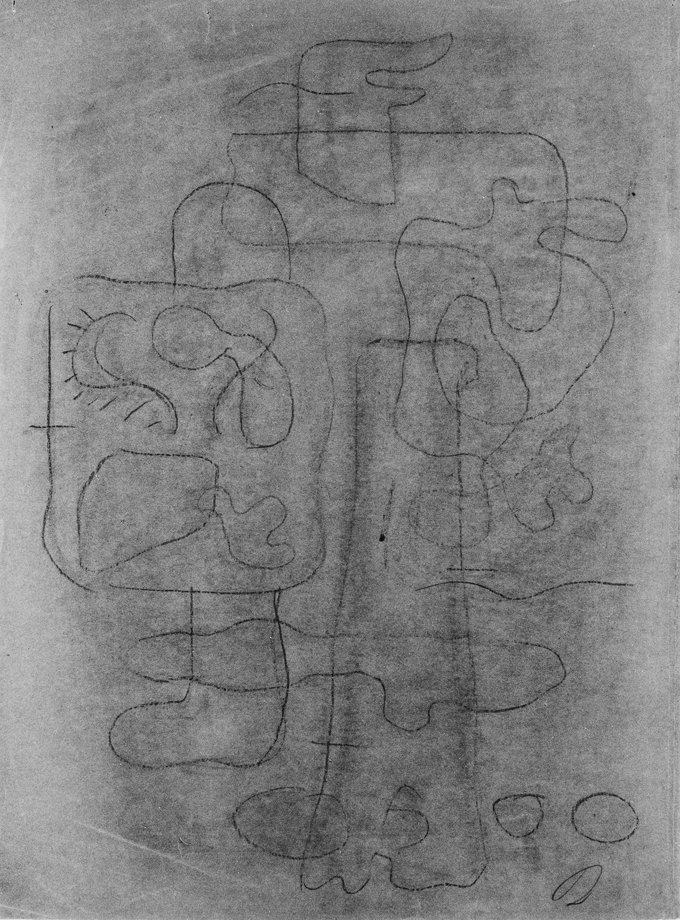 Kohle, gewischt, Ölkreide in Rot, z. T. gewischt (sehr schwach), fixiert, auf olivgrünem Tonpapier