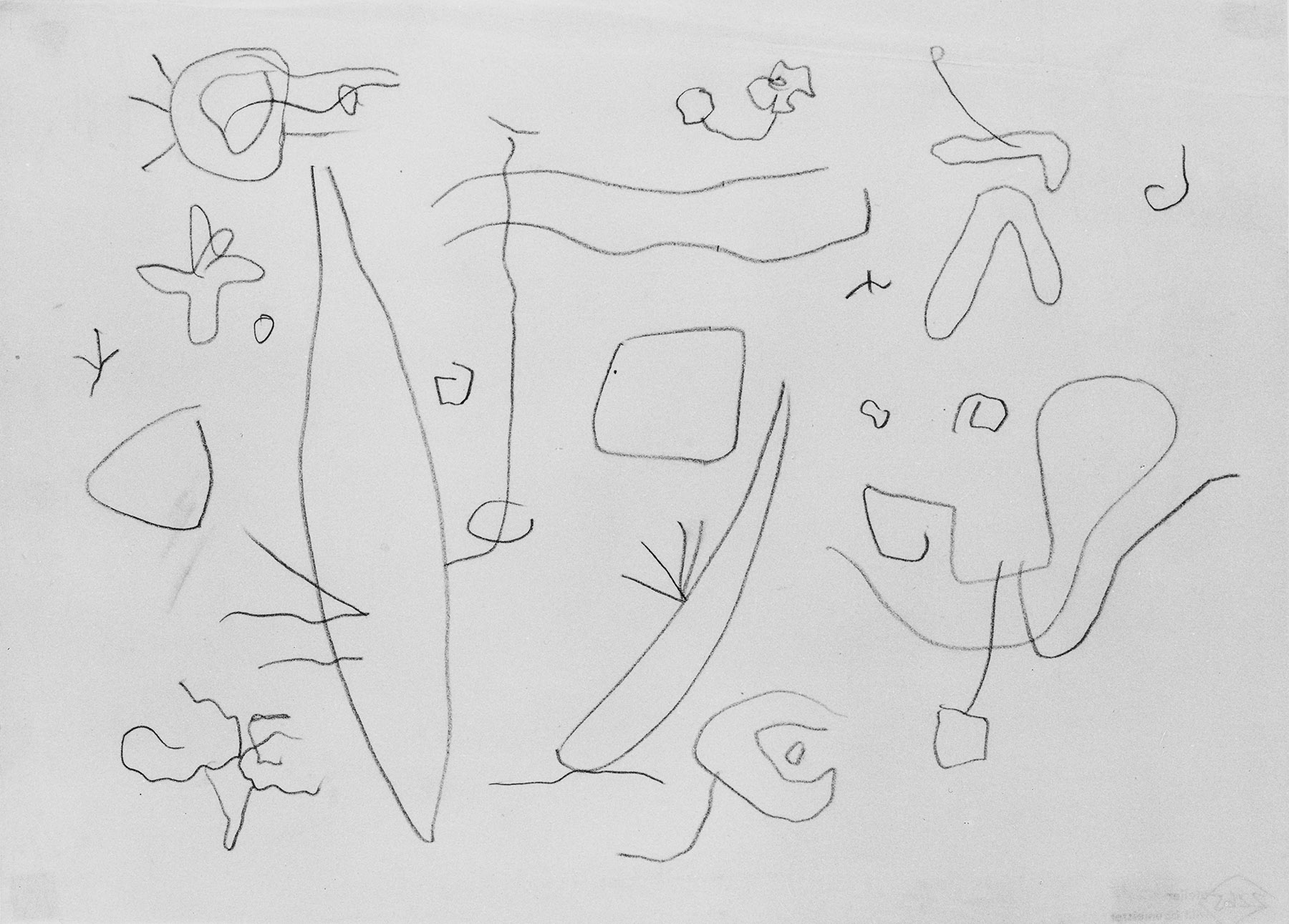 Bleistift, auf chamoisfarbigem, durchscheinendem Schreibpapier