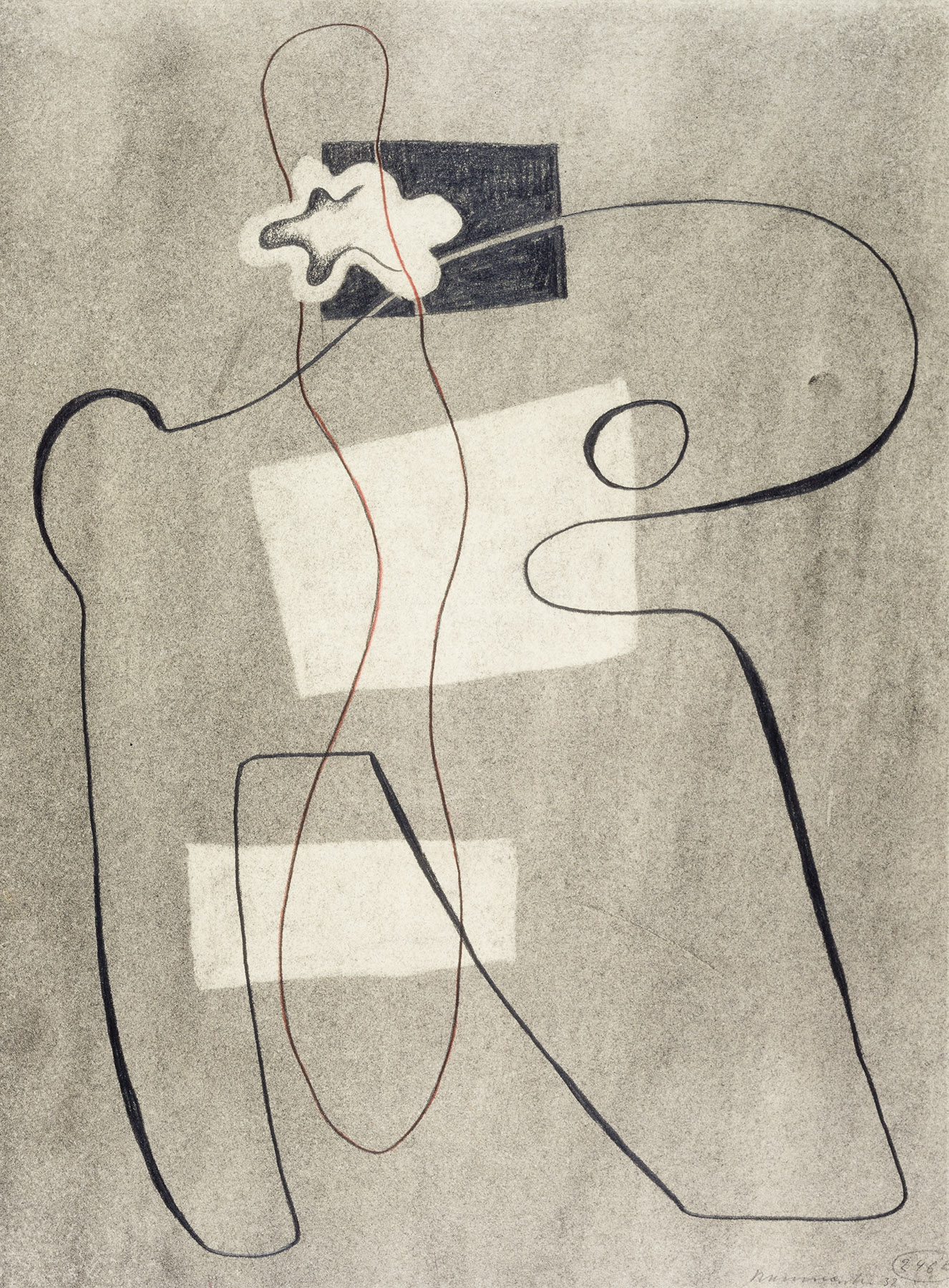 Vgl. das von B. „II.32“ datierte Gemälde G 315 und das „4.32“ datierte G 314. (fkb) 432-434: Die Kugel im Kopf der Figur entwickelt sich hier zu einer amorphen, amöbenhaften Form, wie sie 1938/39 in den „Eidos“-Bildern eine entscheidende Rolle spielen wird.