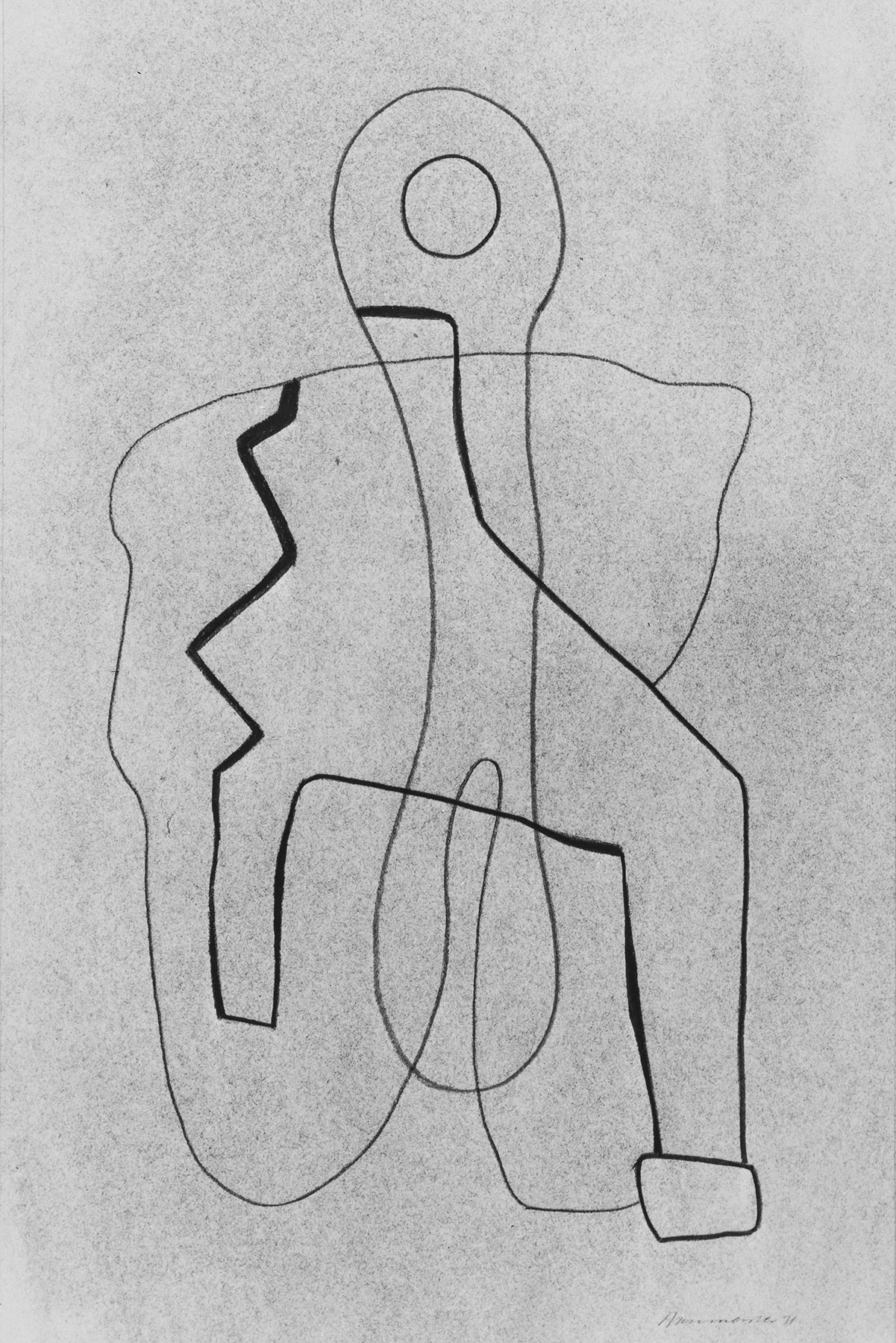Provenienz: Geschenk des Künstlers im Dezember 1931 an die Niedersächsische Landesgalerie Hannover, Inv. Nr. PMHz 1420, als entartet beschlagnahmt. - Graphisches Kabinett Wolfgang Werner, Bremen, 1976 Vgl. G 302 von 1931. Von B. im Notizbuch der „Fotos und Zeichnungen“, S. 4, aufgeführt: „Museum Hannover/ gegeben Dez 1931 / Linienzeichnung 1931“. (fkb) Das Ölgemälde G 302 befand sich ehemals ebenfalls in der Niedersächsischen Landesgalerie.   429-455: Das Thema der statuarischen Figur verarbeitet mit den Mitteln der imaginären Linienführung, der als raumhaltiges Element Flächen hinterlegt sind.