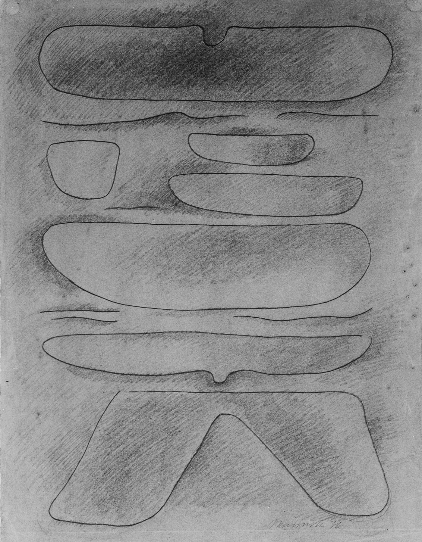 Vgl. das verschollene oder vernichtete, auf Foto „Sept. 1936“ datierte Gemälde, nicht bei G, Foto im Archiv Baumeister. (fkb) 649-656: Die Formgebilde werden in paralleler Ordnung neben- und übereinander angegeben. Lediglich in Z 655 wird zusätzlich durch unterschiedliche weiß-graue Valeurs Räumlichkeit suggeriert.