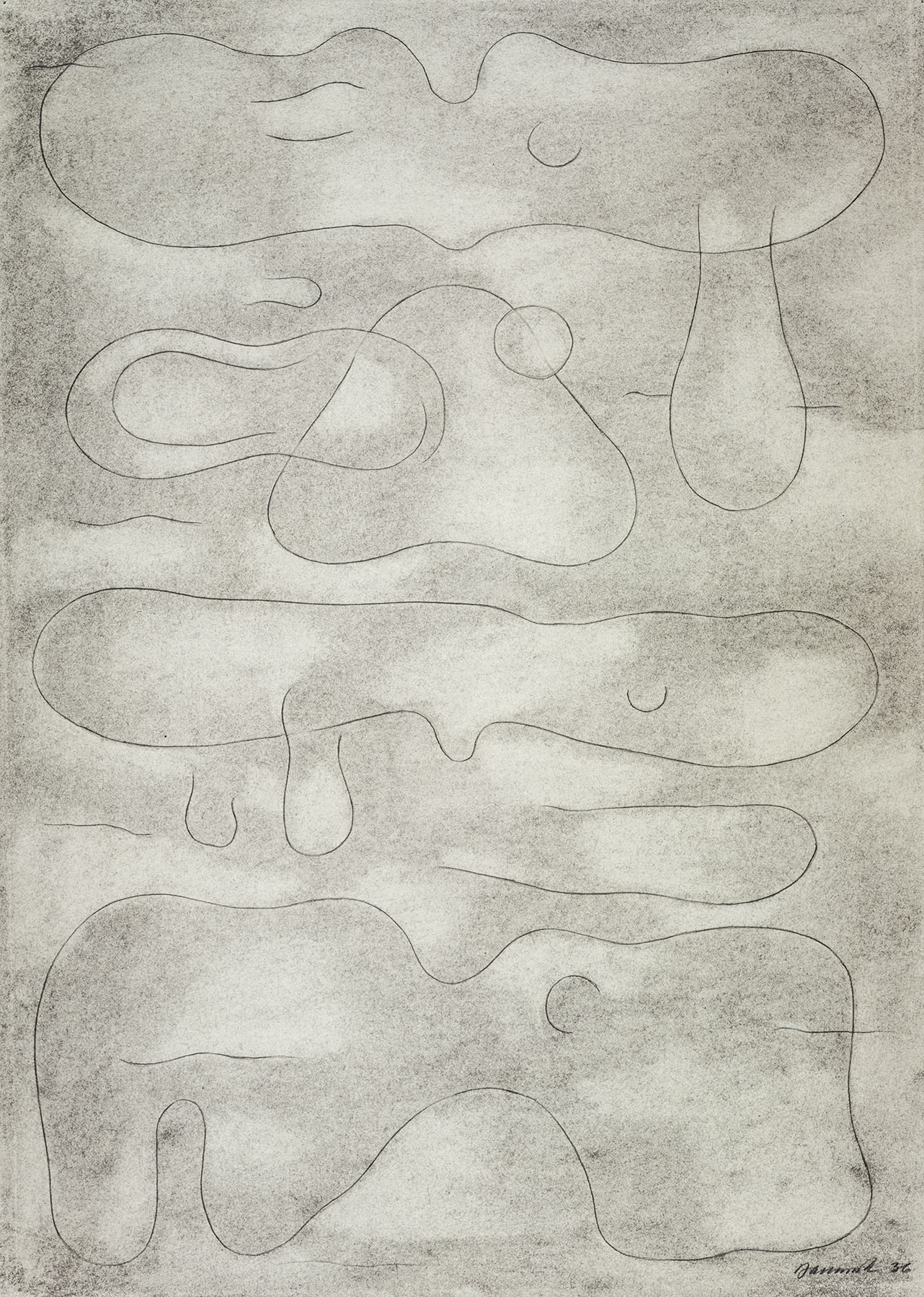 Vgl. Z 642, 643 und 646. Vorliegende Zeichnung ist mit Z 642 fast deckungsgleich. Die Pentimenti auf Z 642 sind hier gültig übernommen und weisen 642 als das davorliegende Blatt aus. - Vgl. das von B. auf einem Foto „1936“ datierte Gemälde G 414. - Vgl. die Lithographie Sp 104 von 1937/38 mit seitenverkehrter Komposition. (fkb)