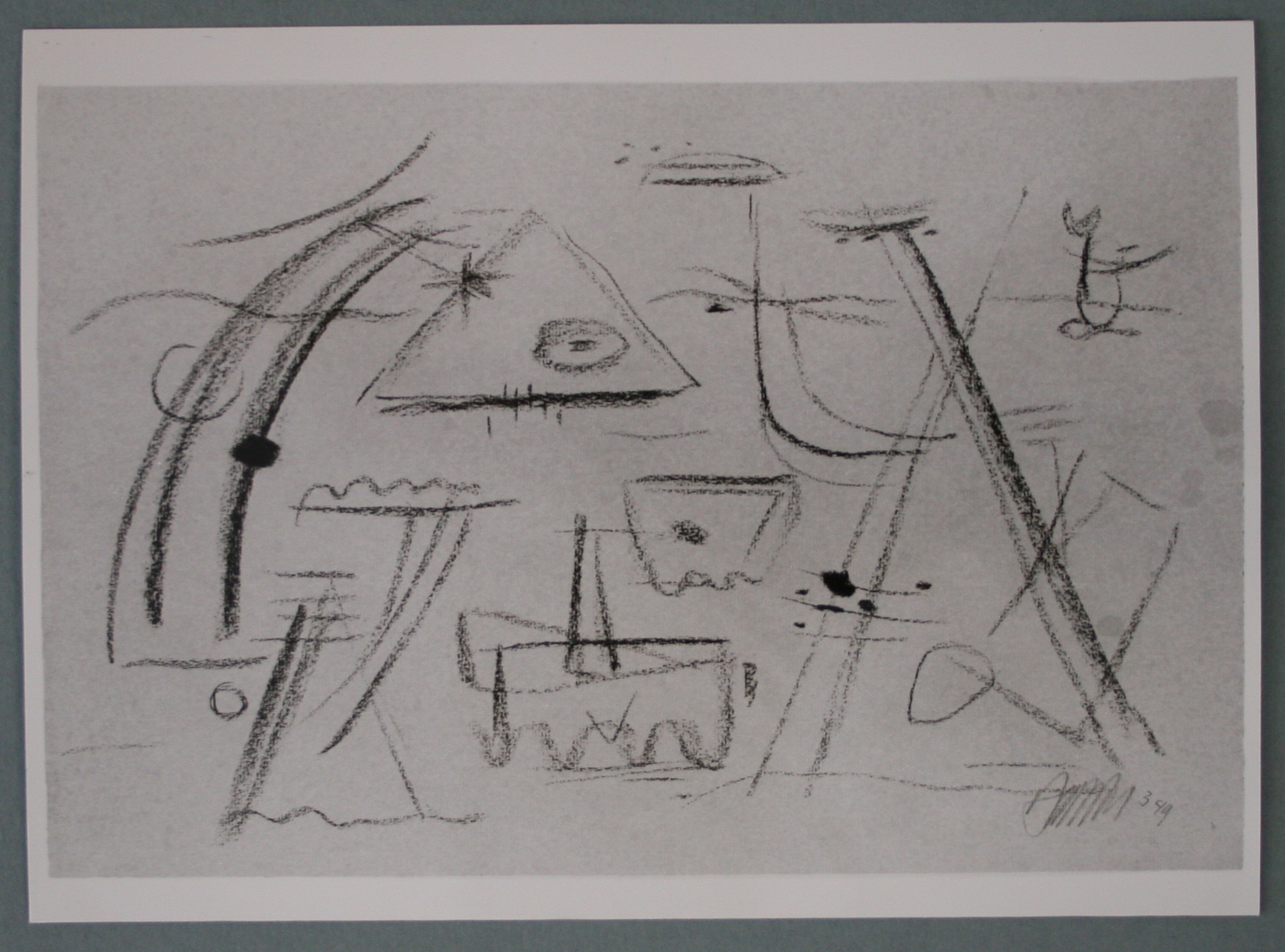 Fixativ gefleckt. am Rand l. und r. leichte Verknickungen. mehrere graue Flecken am Rand r. Mitte.