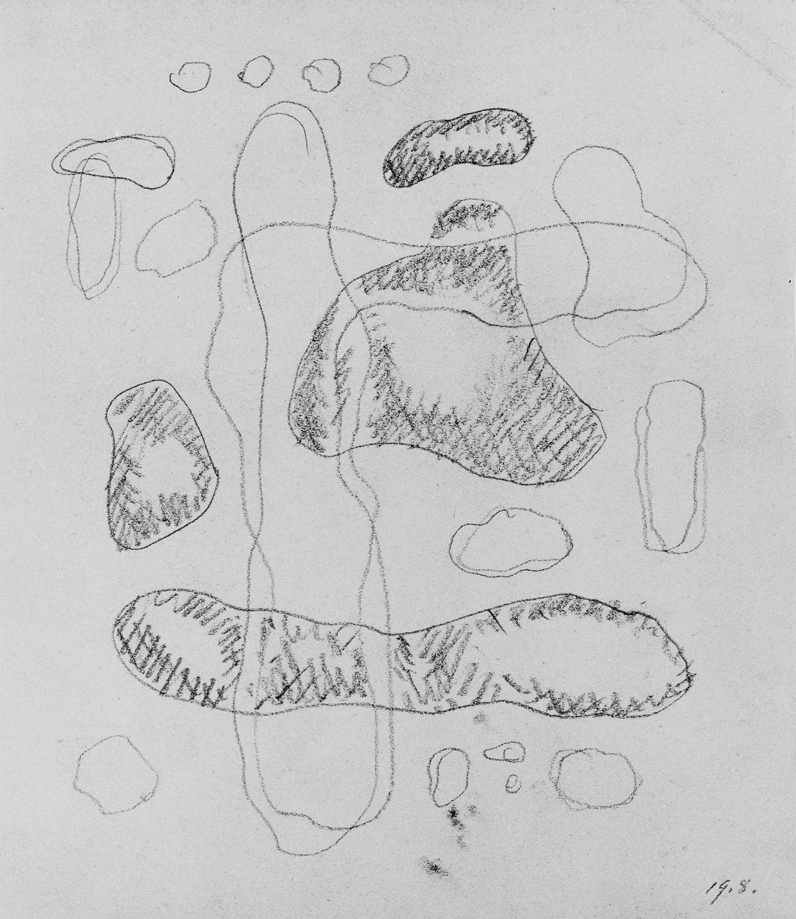 Bleistift, auf chamoisfarbigem, am Rand l. perforiertem, am Rand r. unregelmäßig geschnittenem Zeichenpapier