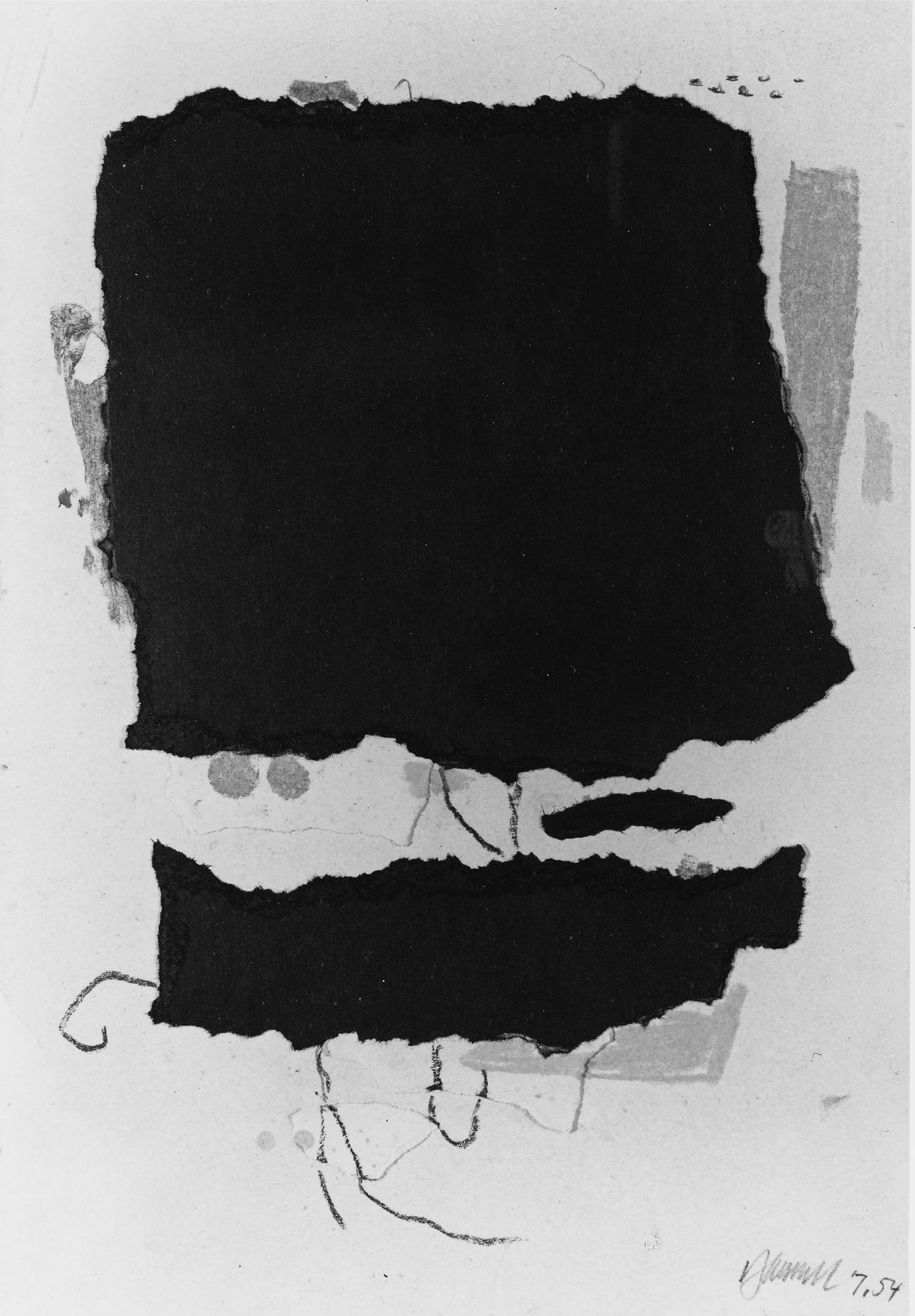 Pastell, Collage mit schwarzem Fotokarton und chamoisfarbigem Ingres-Bütten, gerissen, auf türkisfarbigem Karteikarton