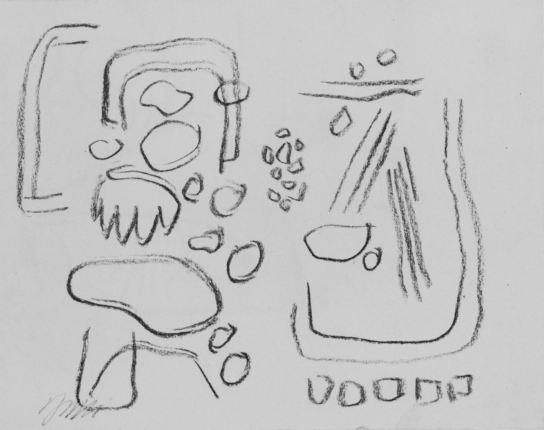 Kohle, fixiert, auf chamoisfarbigem Kupferdruckpapier
