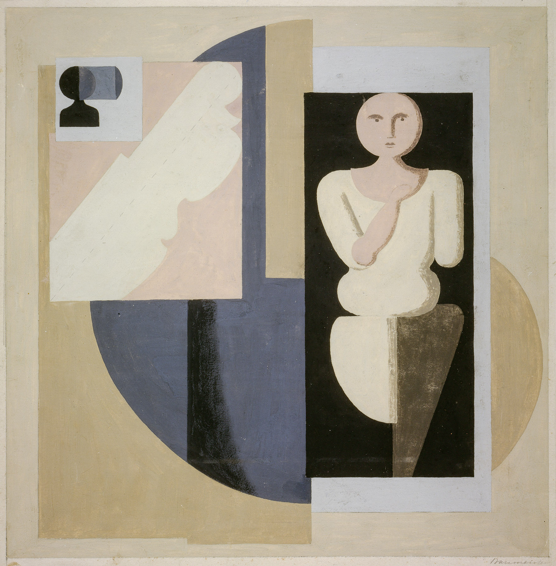 Hier findet sich die Komposition der Z 114 im kleinen Format der Gouache wieder. In der Form oben links erscheint die schräggestellte Figur von Z 106 variiert. Vgl. G 182 von 1922.