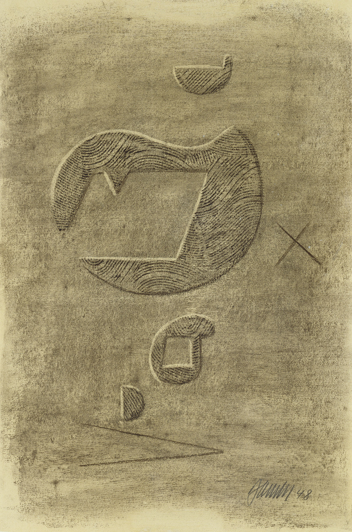 Kohle, gewischt, radiert, Kreide in Schwarz, durchgerieben, fixiert, auf maisfarbigem Ingres-Bütten