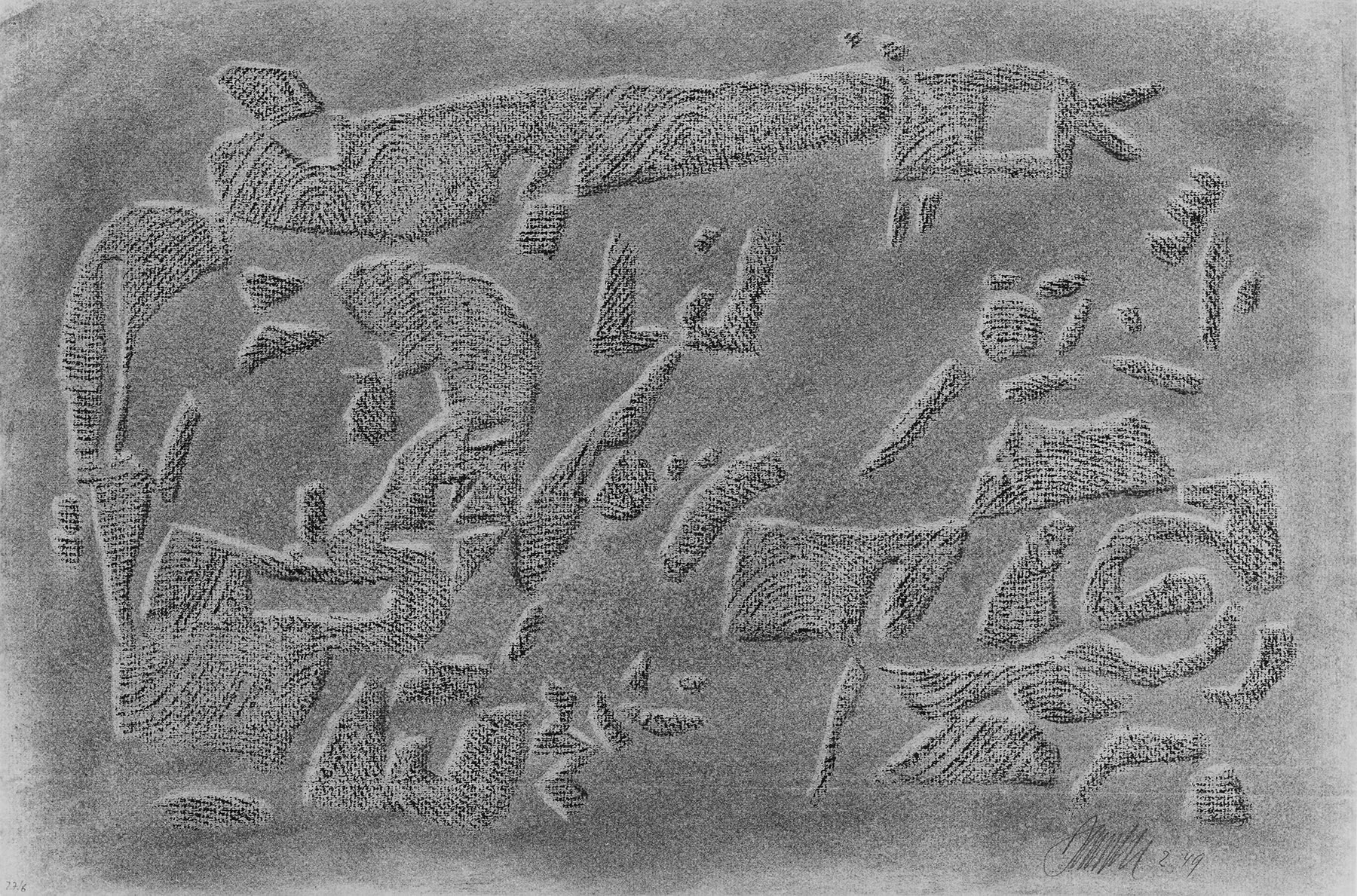 Die Blätter 1978, 1979 und 1980 weisen das Motiv eines Kreuzes auf, das Heinz Rasch zur Titelfindung „sakral“ veranlaßte. Die Zeichnungen entstanden während Baumeisters Kuraufenthalt vom 12. 2. - 10. 3. 1949 in Bad Ditzenbach, wo er von Ordensschwestern betreut wurde. (fkb)