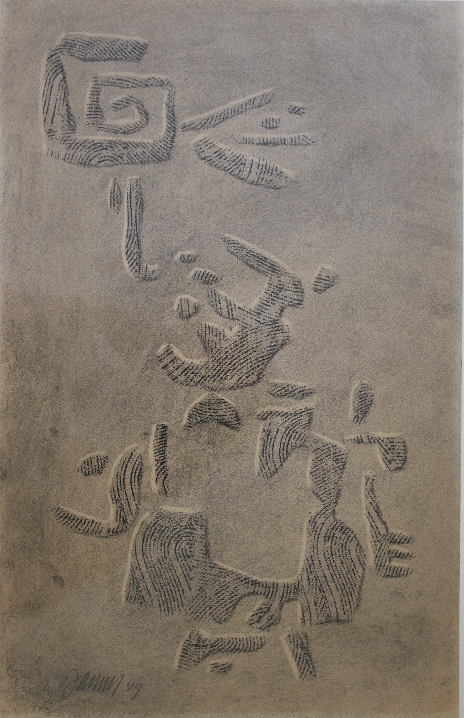 Frottage, Kohle und Ölkreide auf chamoisfarbigem Bütten