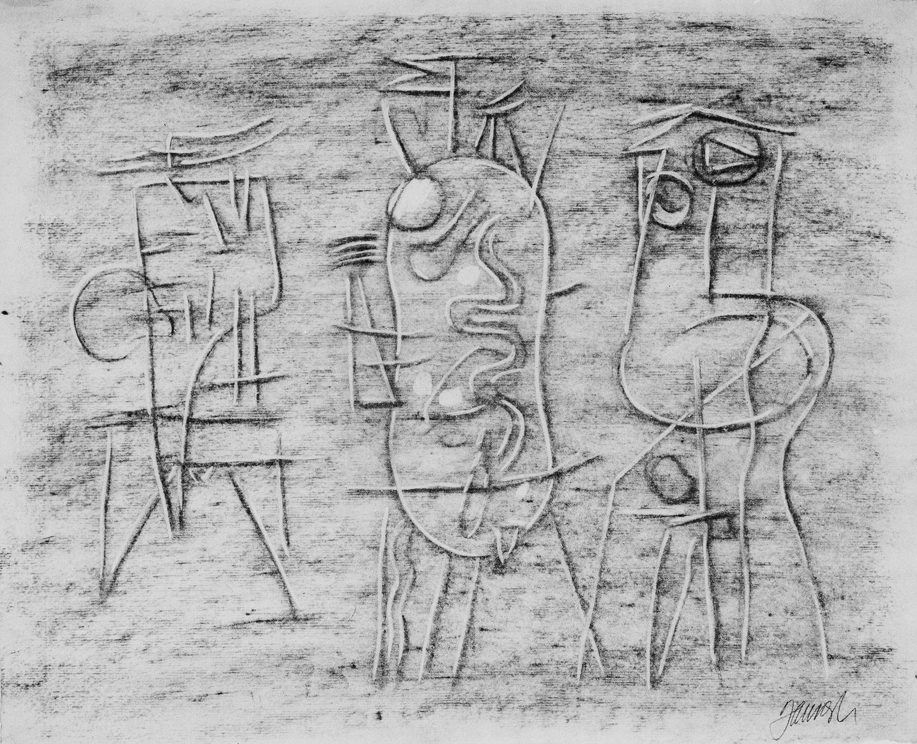 Kohle, gewischt, radiert, fixiert, auf chamoisfarbigem, am Rand u. leicht unregelmäßigem Ingres-Bütten mit Wz. in der Mitte: Thronende Helvetia in ovalem gekrönten Medaillon und JW ZANDERS