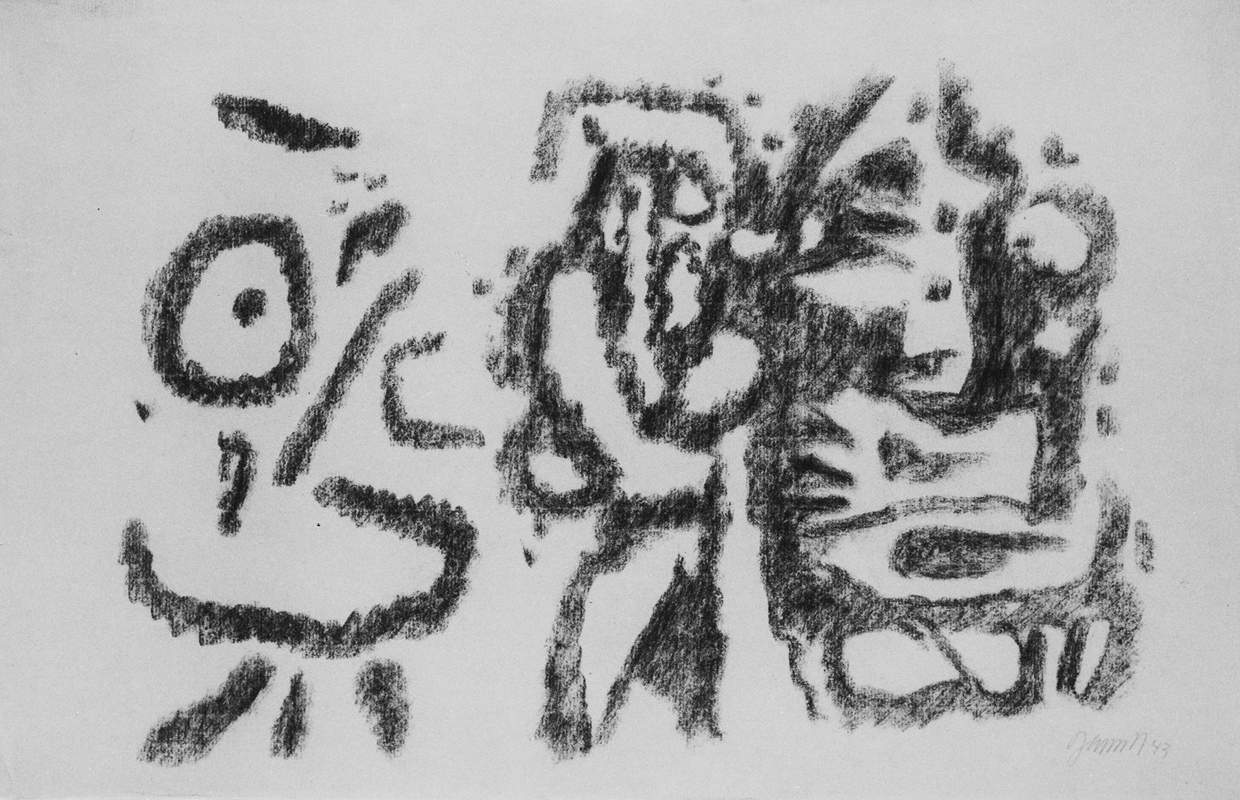 Kohle, fixiert, auf chamoisfarbigem Ingres-Bütten