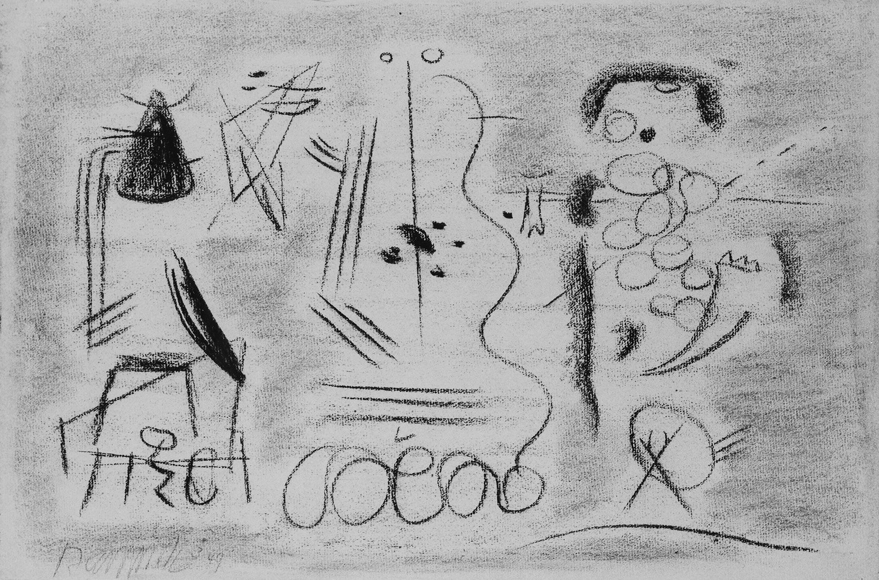 Kohle, z. T. gewischt, Pastell in Ockergelb, fixiert, auf maisgelbem Ingres-Bütten mit Wz. l. u.: CANSON & MO... und r. o.: INGRES