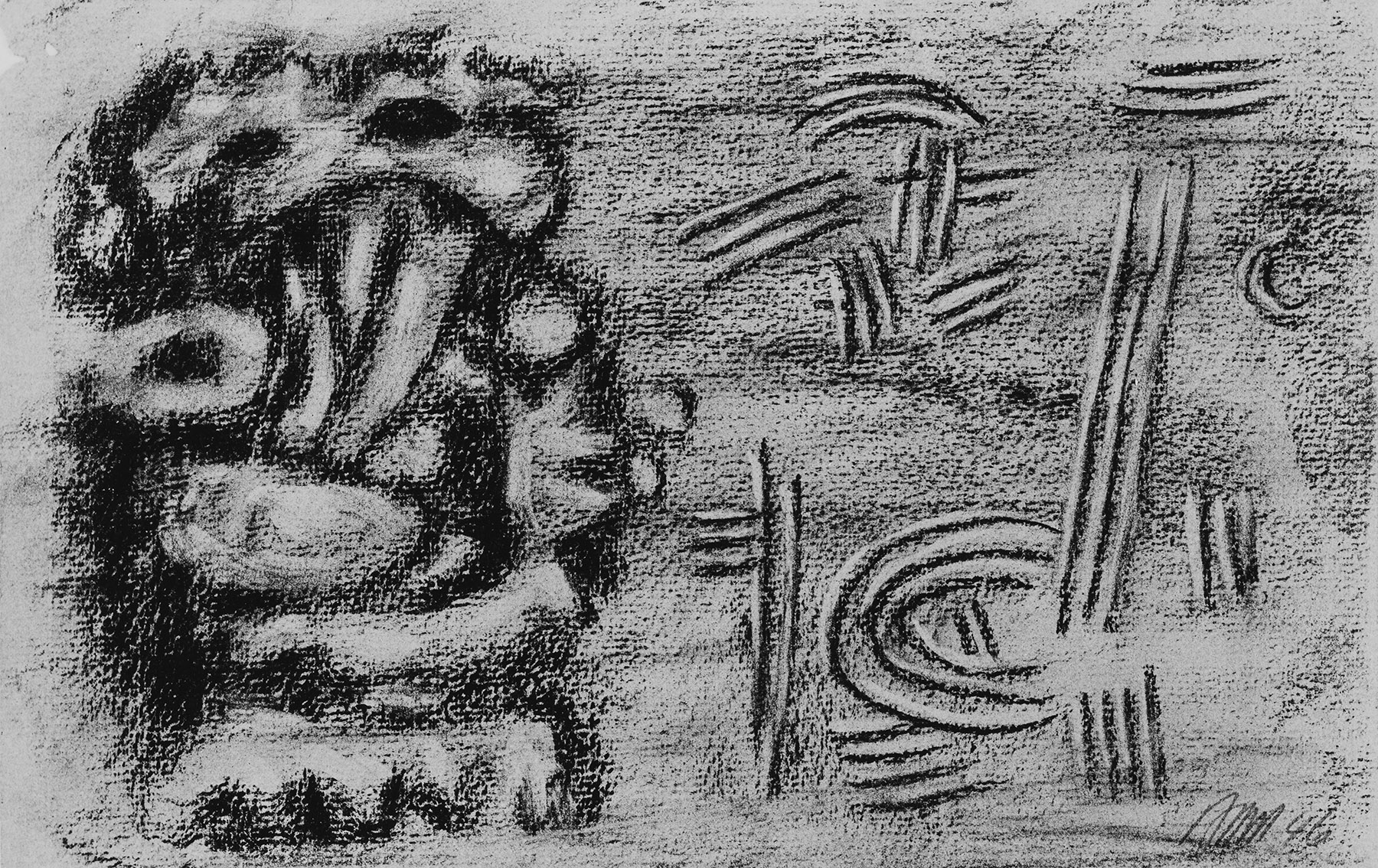 Kohle, gewischt, radiert, fixiert, auf graubraunem Ingres-Bütten