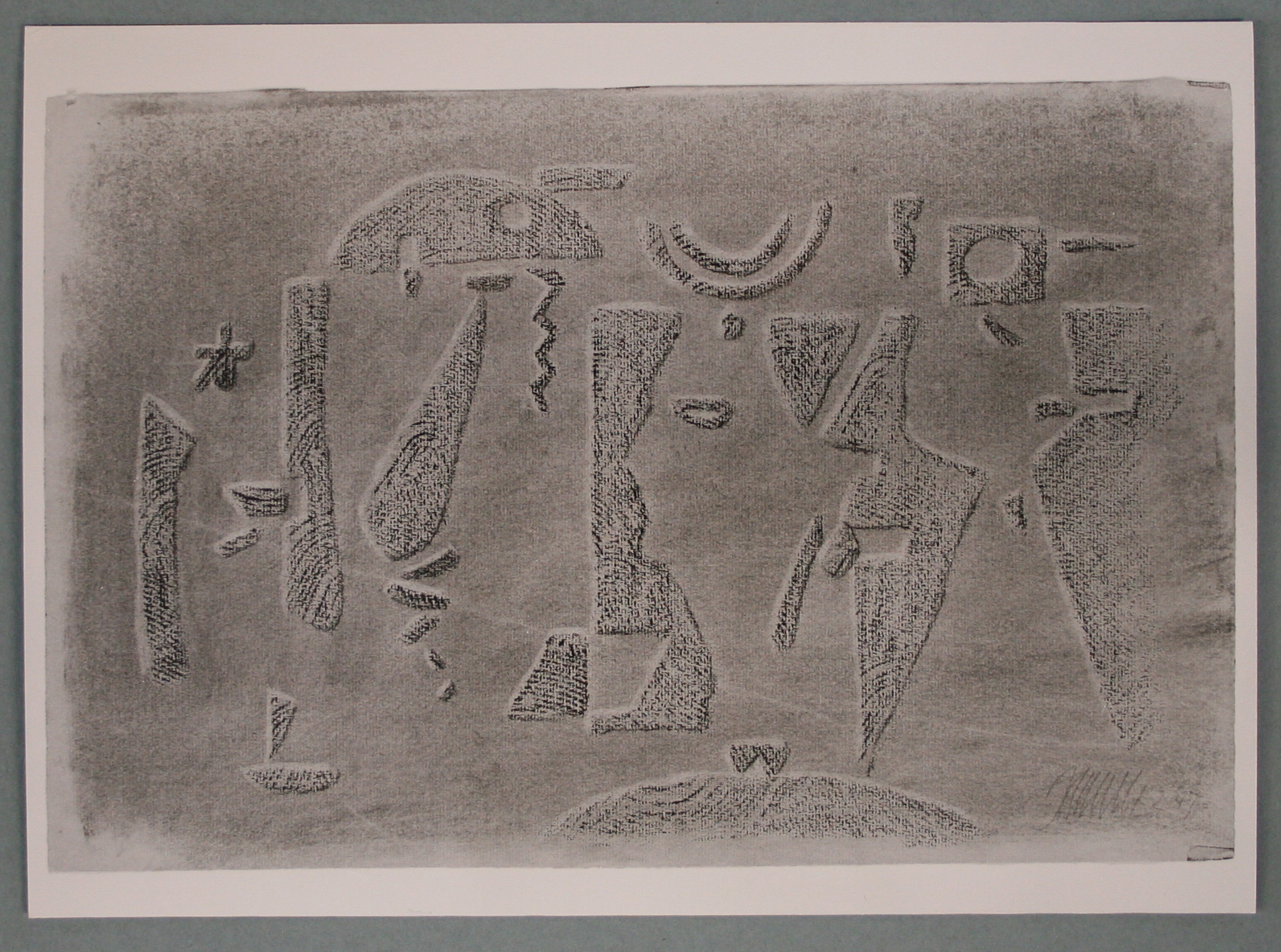 Kohle, gewischt, radiert, Ölkreide in Schwarz, durchgerieben, fixiert, auf beigefarbigem Ingres-Bütten mit Wz. r. u.: INGRES