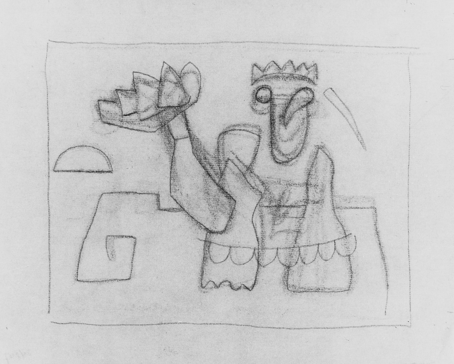 Kohle, Bleistift, auf elfenbeinfarbigem Bütten, verso mit Kohle eingefärbt