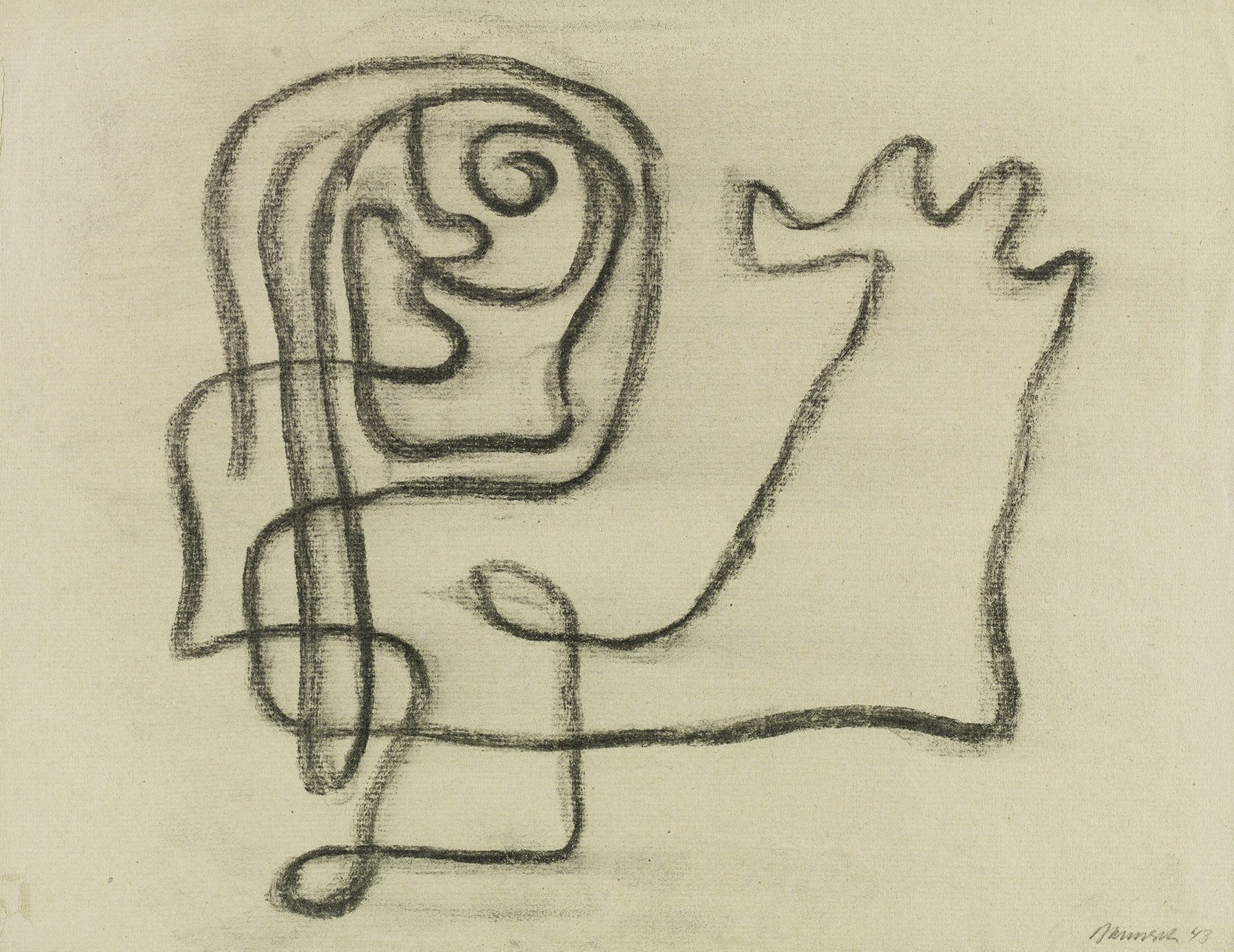 Kohle, fixiert, auf lindgrünem Ingres-Bütten