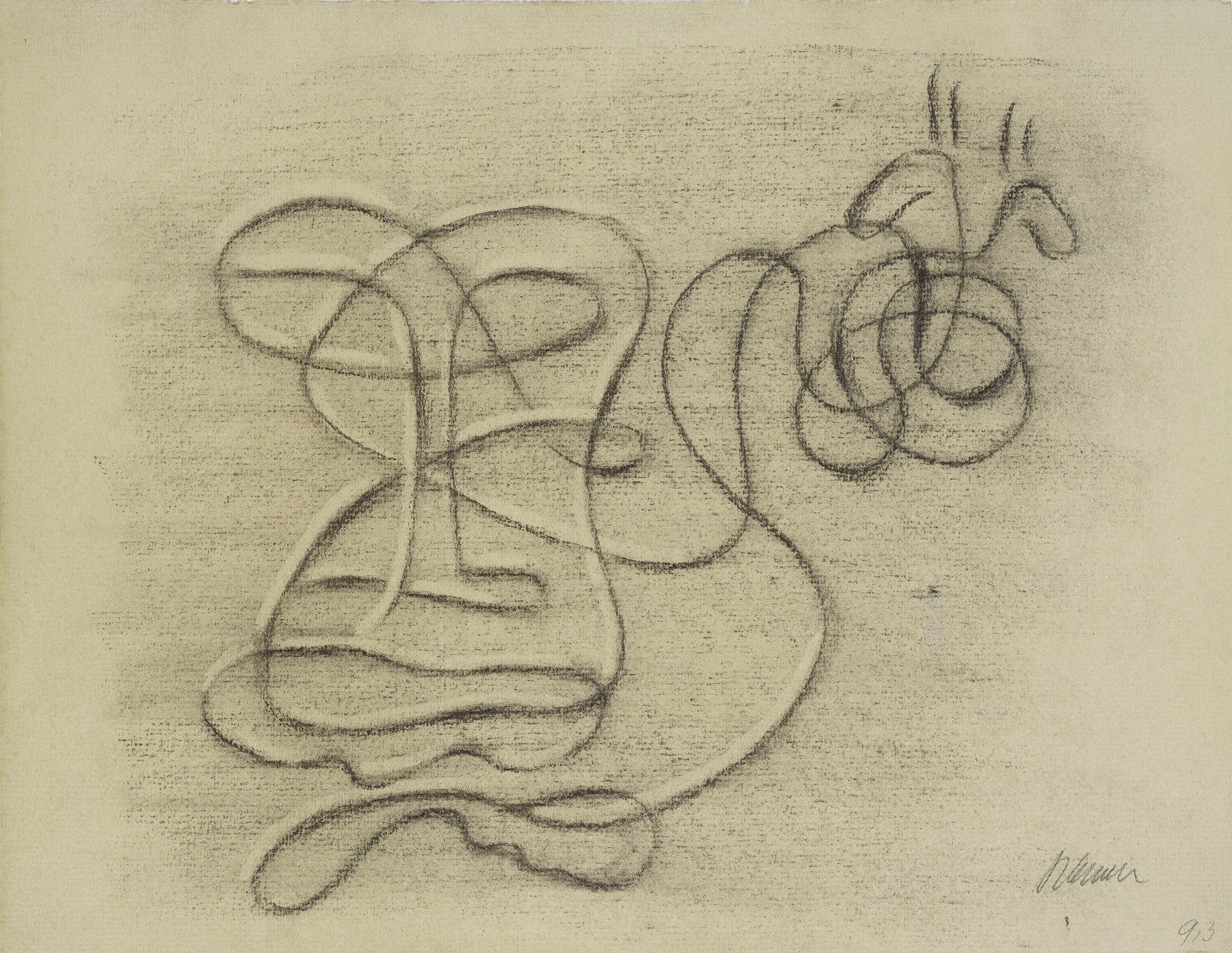 Kohle, gewischt, radiert, fixiert, auf beigefarbigem Ingres-Bütten mit Wz. l. o.: INGRES