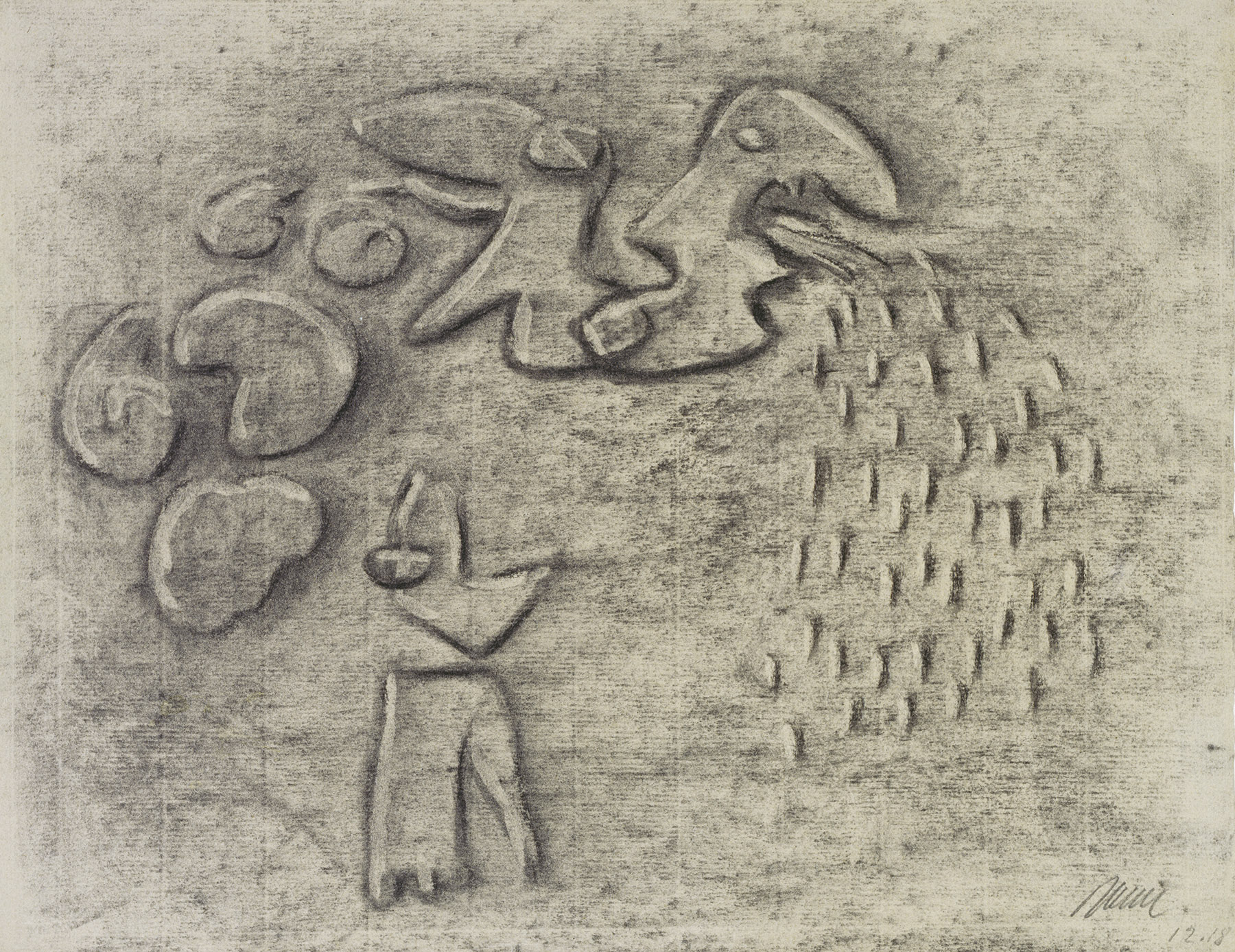 Kohle, gewischt, radiert, fixiert, auf chamoisfarbigem Ingres-Bütten