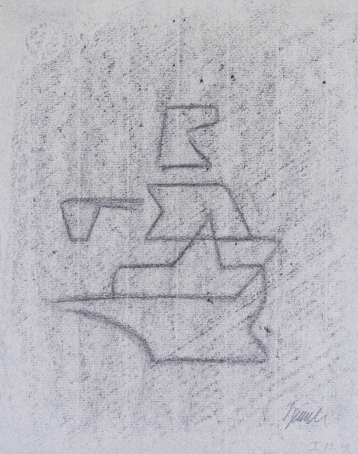 Kohle, Ölkreide in Schwarz, fixiert, auf lichtblauem Ingres-Bütten mit Wz. l. o.: Hahn im Kreis