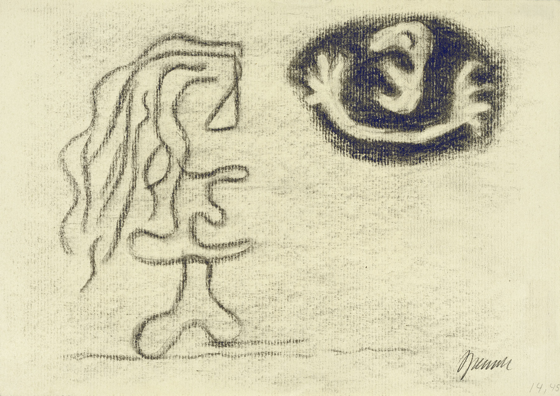 Kohle, gewischt, radiert, fixiert, auf gelblichem, am Rand l. leicht schräg von l. o. nach r. u. beschnittenem Maschinen-Bütten