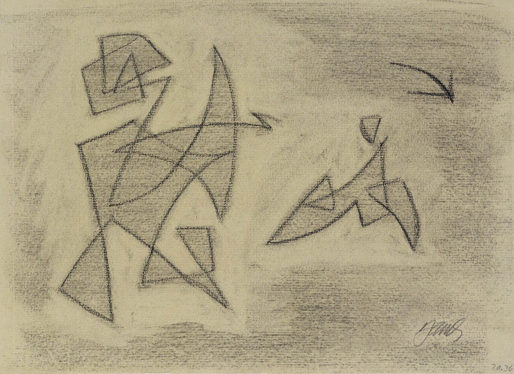 Kohle, gewischt, Ölkreide in Schwarz, fixiert, auf beigefarbigem Ingres-Bütten mit Wz. l. u.: PMF (beschnitten)