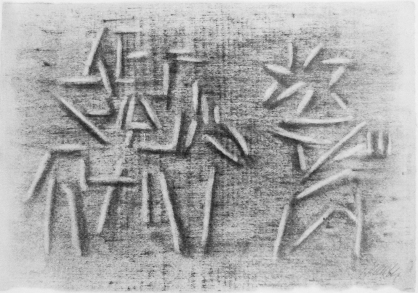 Kohle, gewischt, radiert, auf chamoisfarbigem Ingres-Bütten