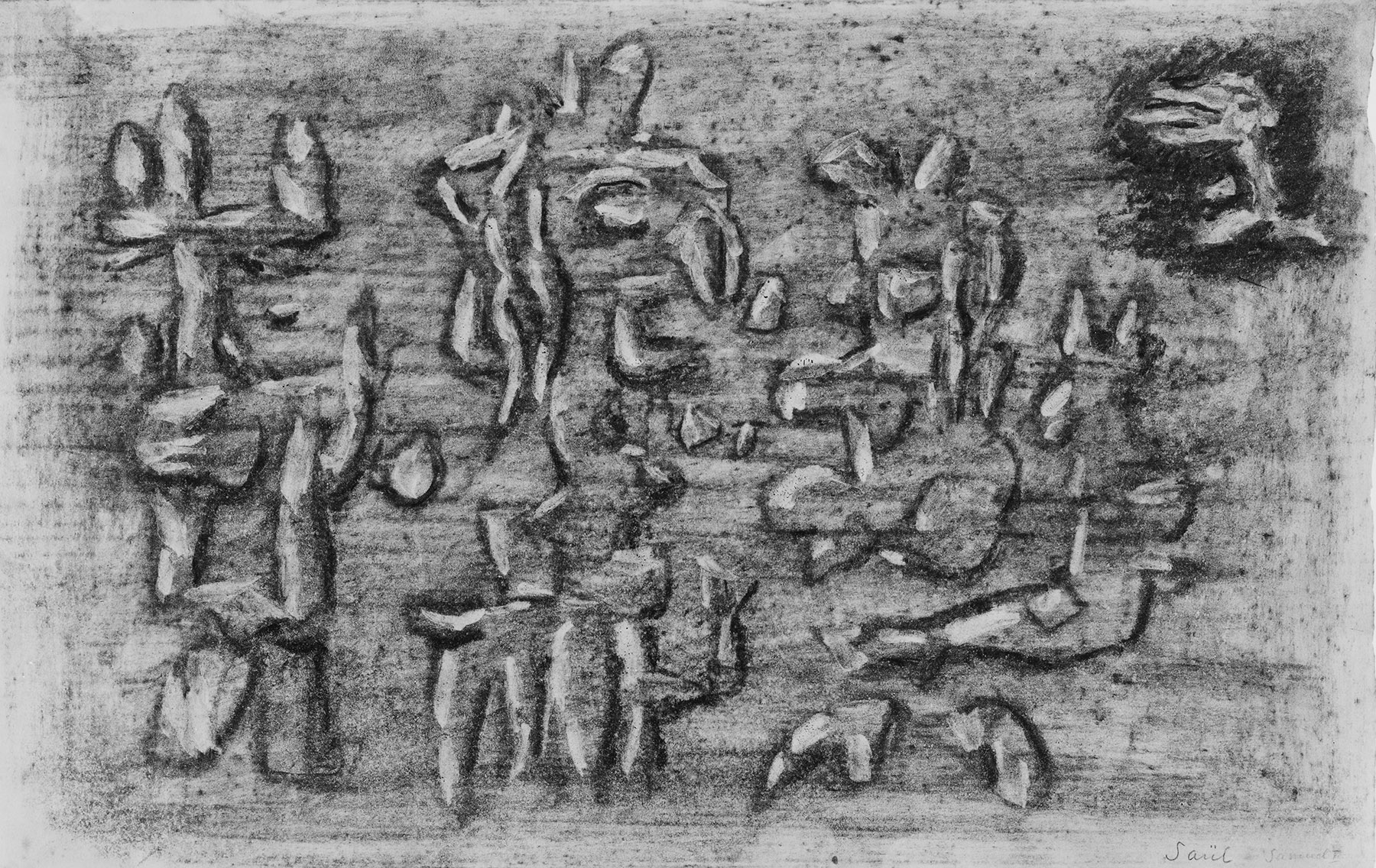 Kohle, gewischt, radiert, fixiert, auf chamoisfarbigem Zeichenpapier