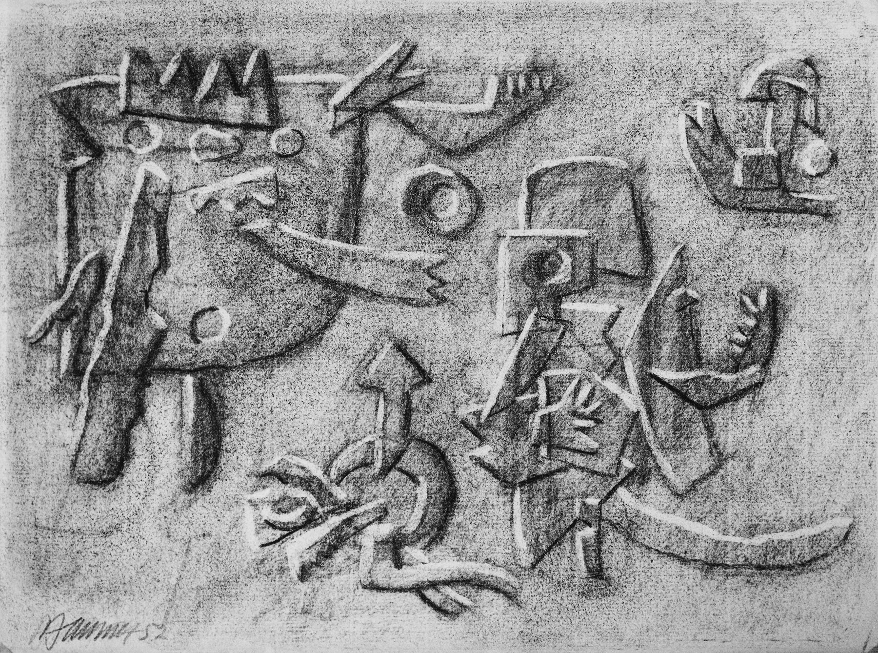Kohle, gewischt, radiert, fixiert, auf hellem, am Rand u. perforiertem Bütten