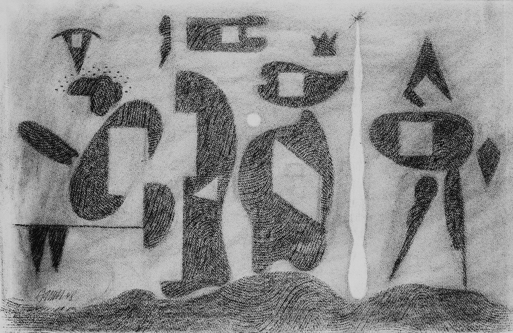 Kohle, gewischt, Ölkreide in Schwarz, durchgerieben, fixiert, auf chamoisfarbigem Ingres-Bütten mit Wz. l. u.: INGRES und r. o.: CANSON & M...