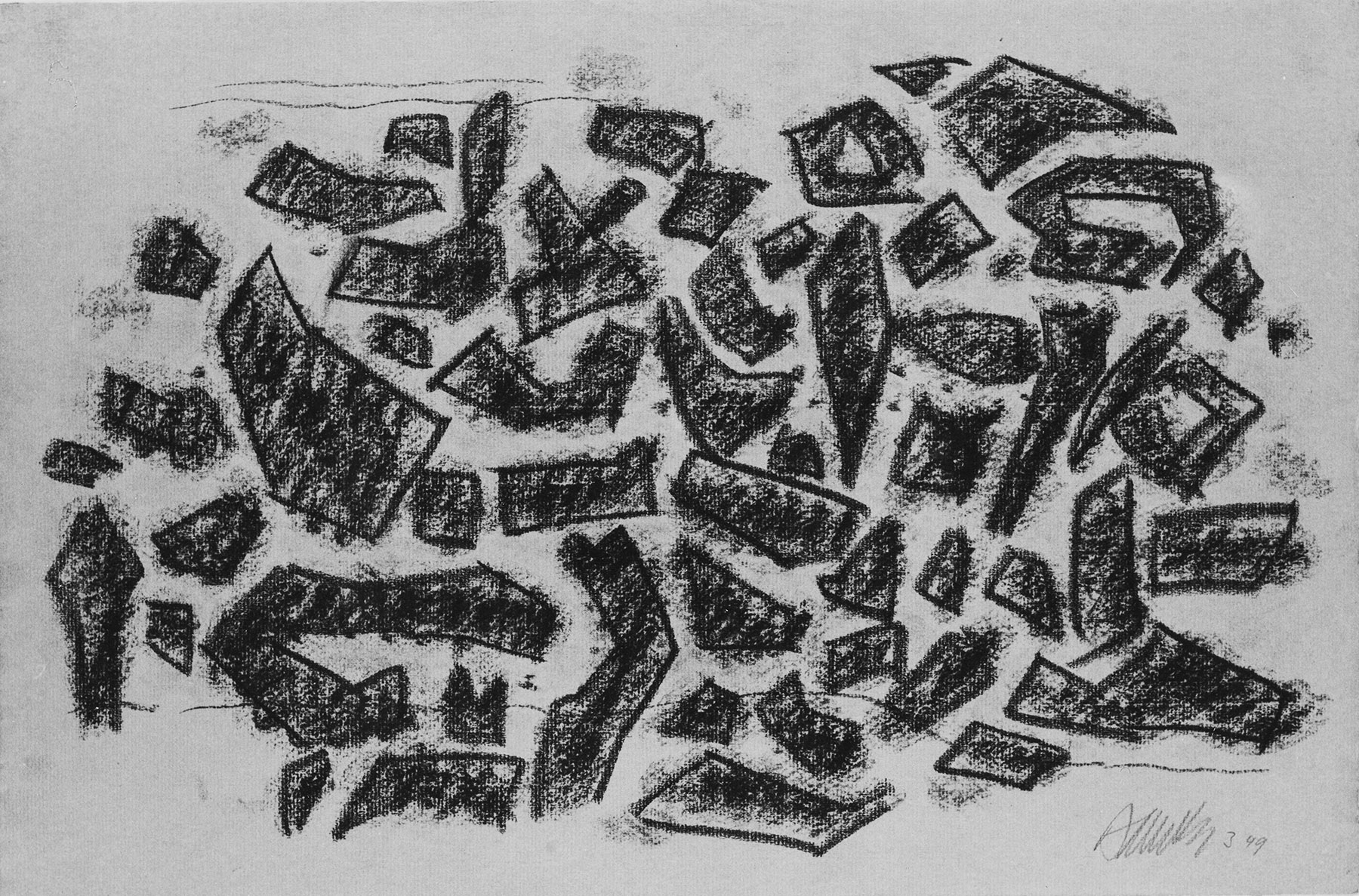 Entstanden während eines Kuraufenthaltes in Bad Ditzenbach, siehe Tagebucheintrag vom 12. 2. 49:„... viel gezeichnet ca. 75 Zeichnungen (halber Ingres-Papier-Bogen) und kleine Zeichnungen zusammen ca. 125 in Ditzenbach gefertigt". (fkb)