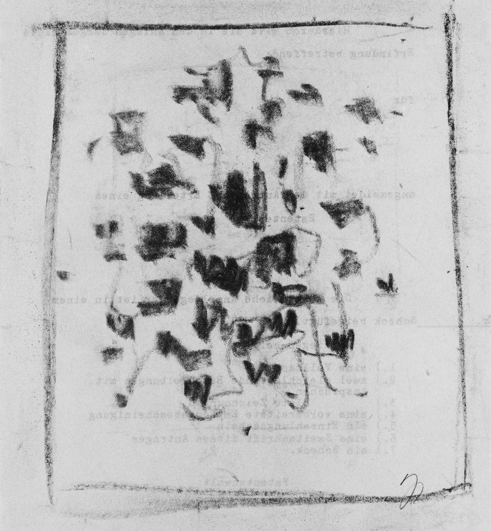 Kohle, fixiert, auf chamoisfarbigem Schreibpapier, verso Formular des Patentanwaltes Dipl.-Ing. H. Baumeister