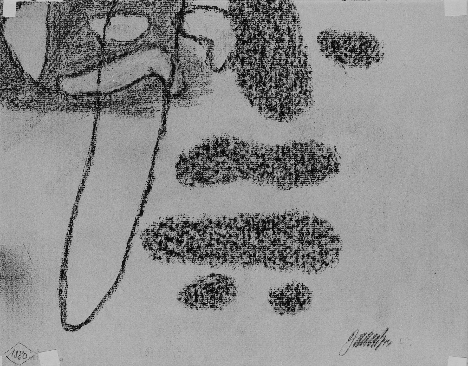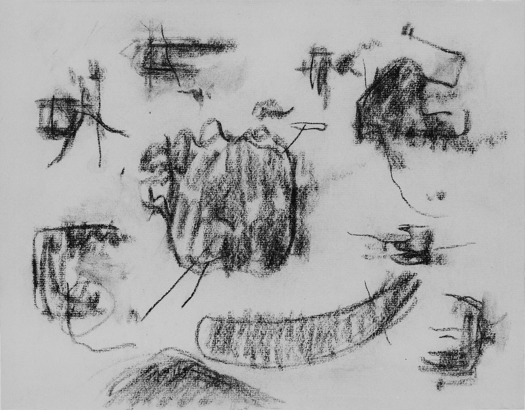 Kohle, z. T. gewischt, fixiert, auf hellbraunem Ingres-Bütten