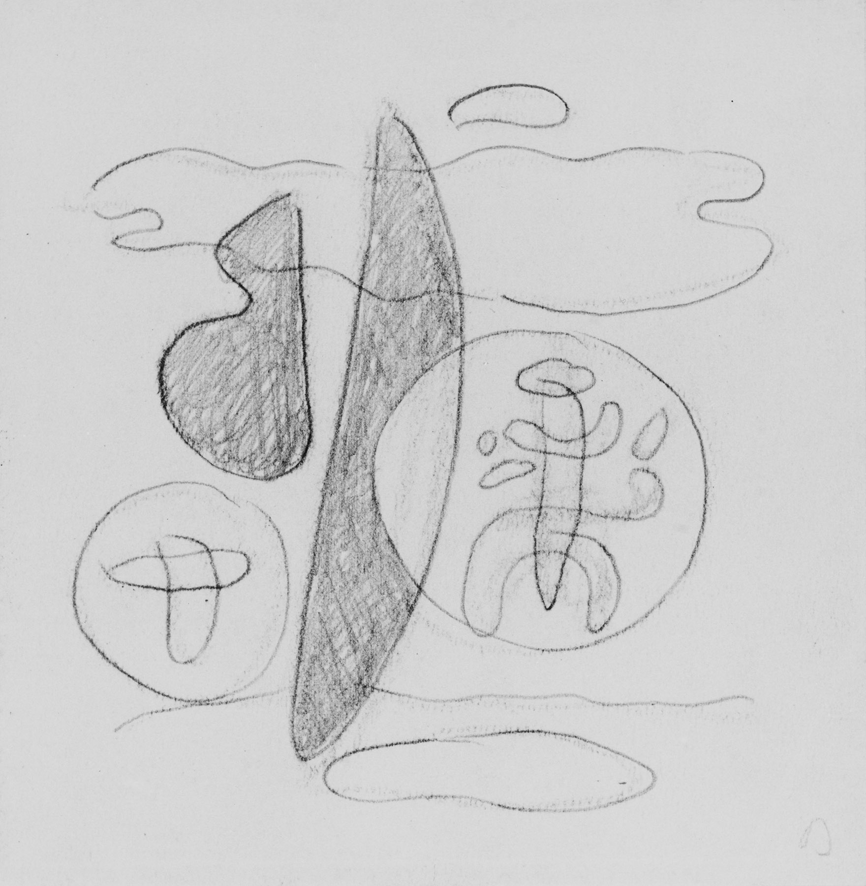 Vorzeichnung in Kohle, Bleistift, auf chamoisfarbigem, genarbtem Zeichenpapier