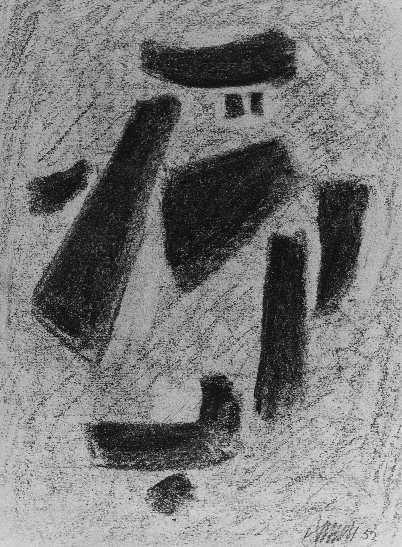 Vgl. das 1952 datierte Gemälde G 785 und die unvollendete Radierung Sp 217, seitenverkehrt als Strichätzung bei Grohmann, 1963, S. 177. (fkb)