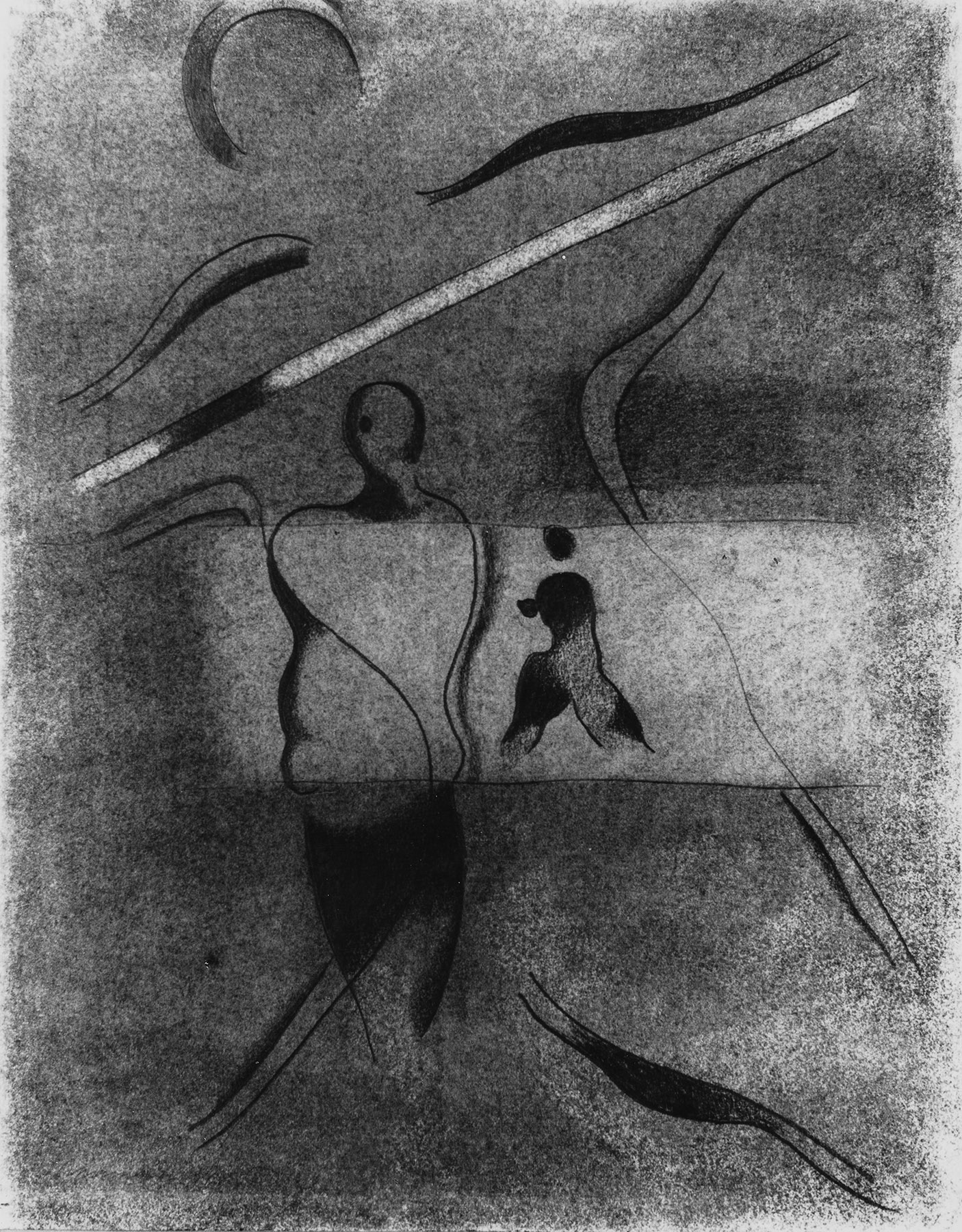 Kohle, gewischt, Bleistift, Ritzkonturen, fixiert, auf chamoisfarbigem, am Rand l. perforiertem Zeichenkarton