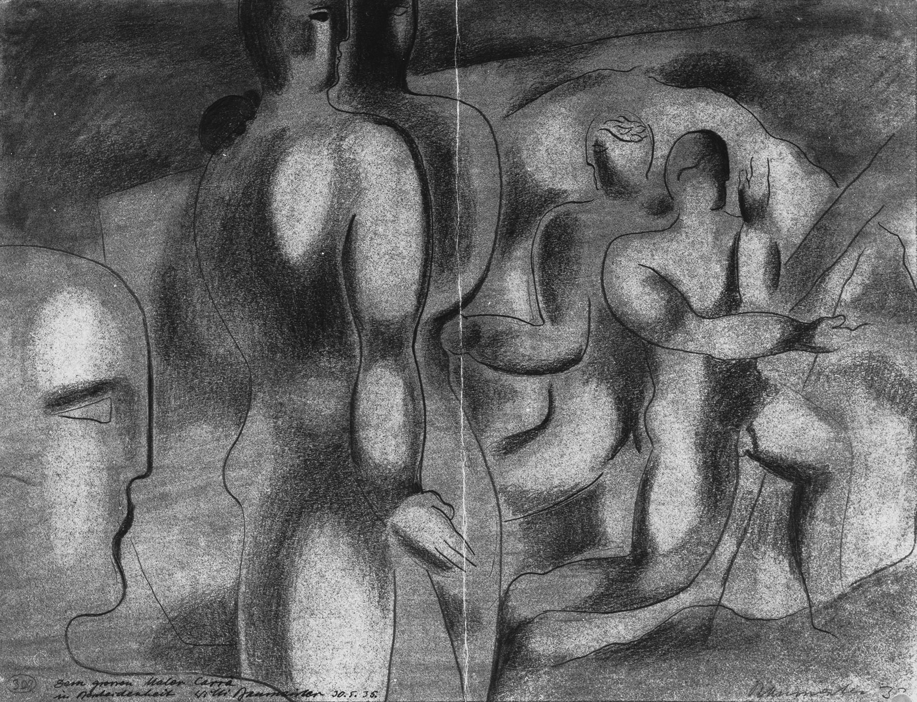 Die Zeichnung wurde laut Widmung Carlo Carrà (1881-1966) geschenkt. Es fragt sich, ob B. als Antwort auf den Stil Carràs hier seine Prinzipien aus den späten 20er Jahren wiederaufnahm. Siehe die verworfene Fassung auf der Rückseite von Z 569.