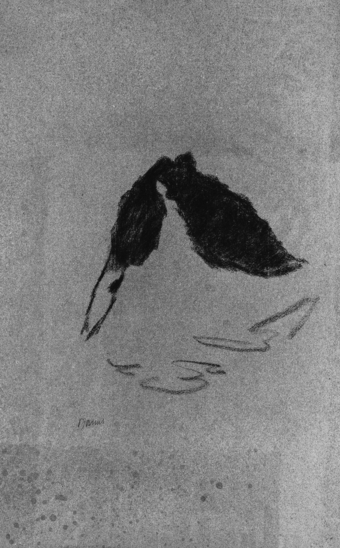 Kohle, fixiert, auf graugrünem, am Rand l. perforiertem Ingres-Bütten