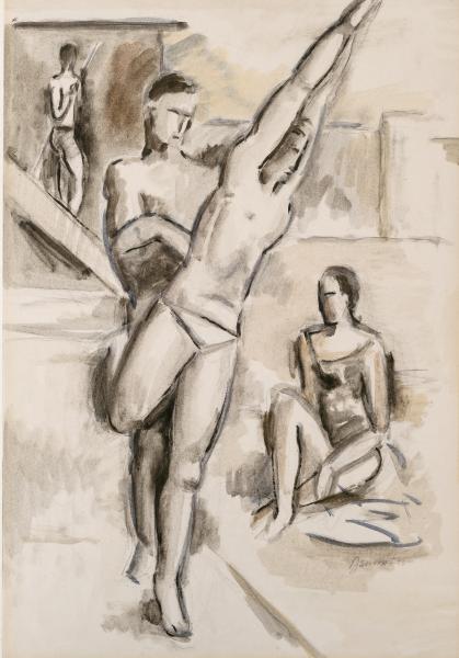 Vergleiche die Motive WVZ 279 bis 286 und 285A ebenso Gemälde BB-0420 "Springer", 1925, auch "Schwimmer" genannt; ebenso Gemälde BB-0439, "Springergruppe", 1928.