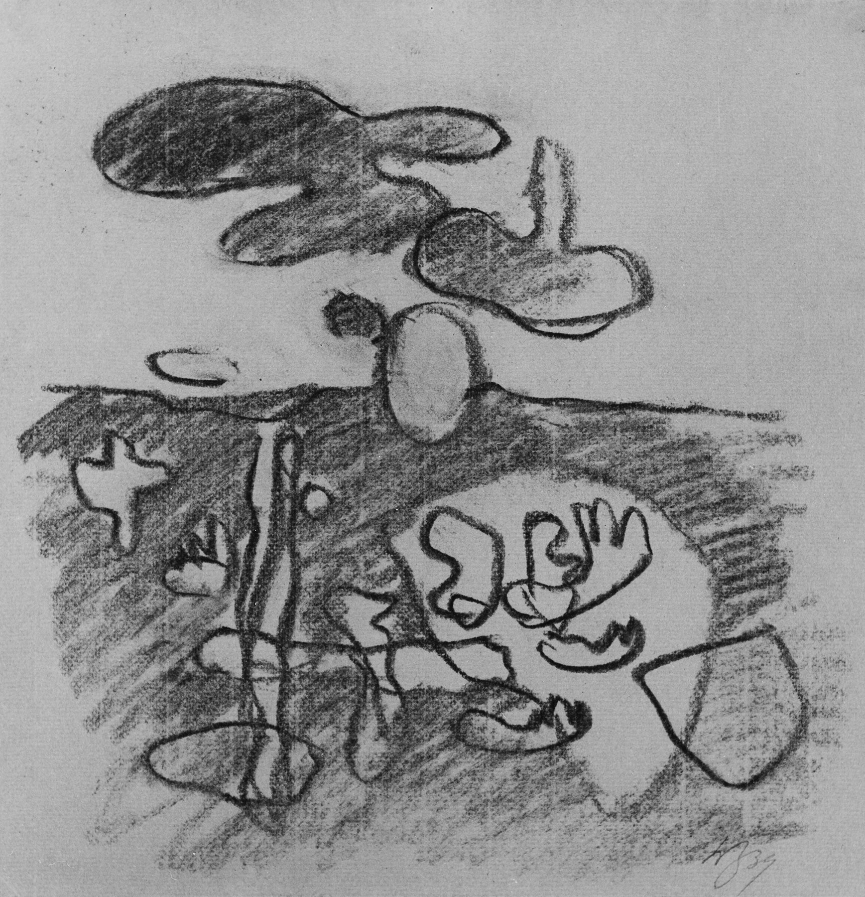 Kohle, fixiert, auf graugrünem Ingres-Bütten