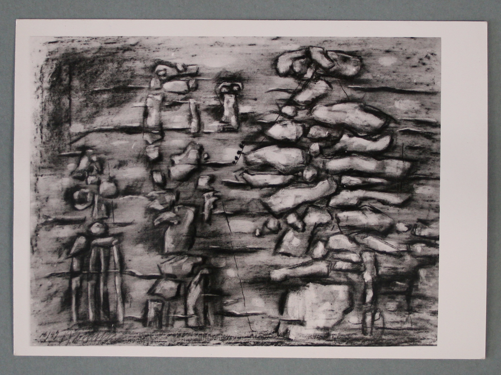 Kohle, gewischt, radiert, Kreide, auf Papier