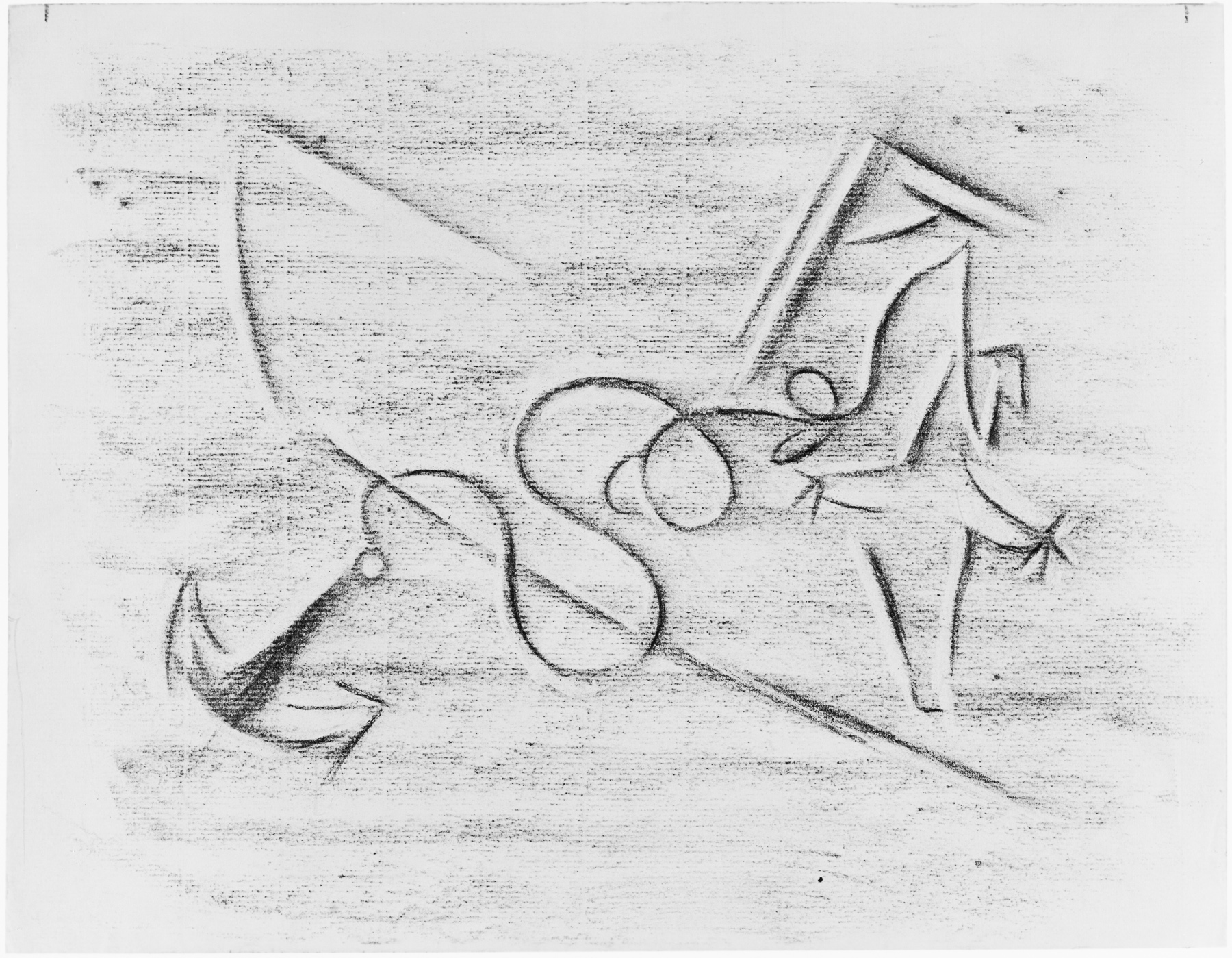 Kohle, gewischt, radiert, fixiert, auf chamoisfarbigem Ingres-Bütten
